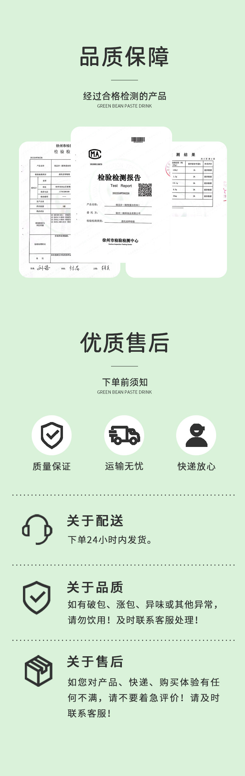 品名:一碗绿绿豆沙规格:250ml/盒(本产品外包装为:电商普通箱)发货地/产地:江苏/江苏保质期: 12个月,建议收到后尽快食用。包装方式:盒装物流信息:四通一达或其它快递随机发货,不接受指定快递。不发货区域:新疆、西藏、港澳台、疫情管控区。 |