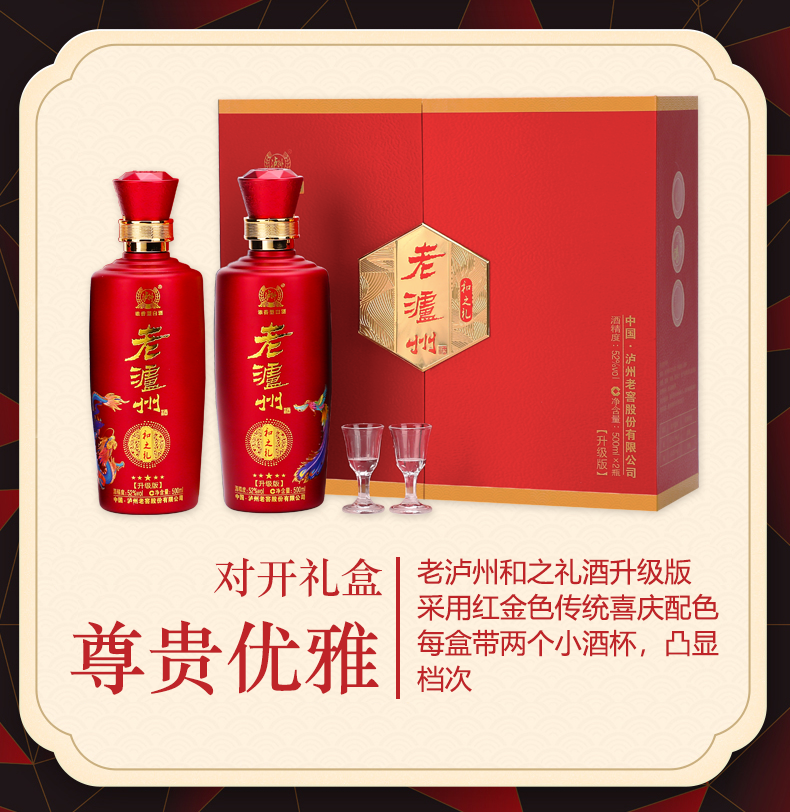 【268元3套礼盒装共6瓶】老泸州和之礼升级版52度浓香型优级白酒礼盒