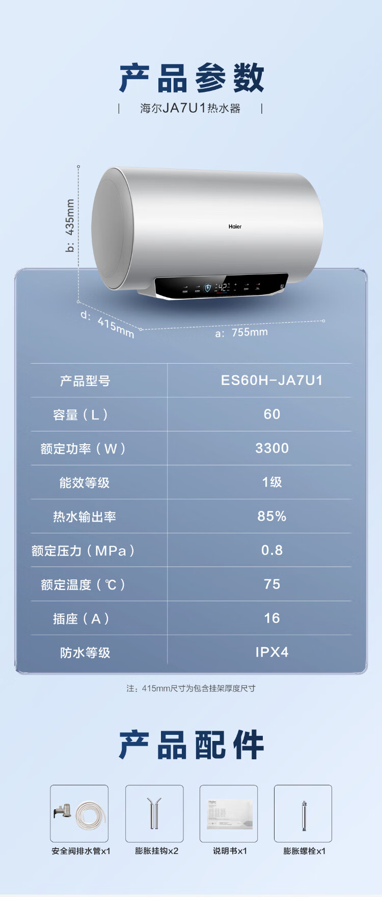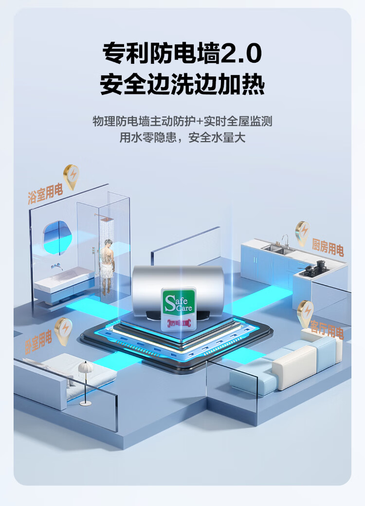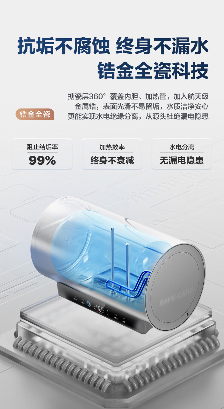 海尔(Haier)【JA7】电热水器60升 一级能效 出水断电 专利防电墙 双重安全 锆金全瓷3300W变频保温 ES60H-JA7U1