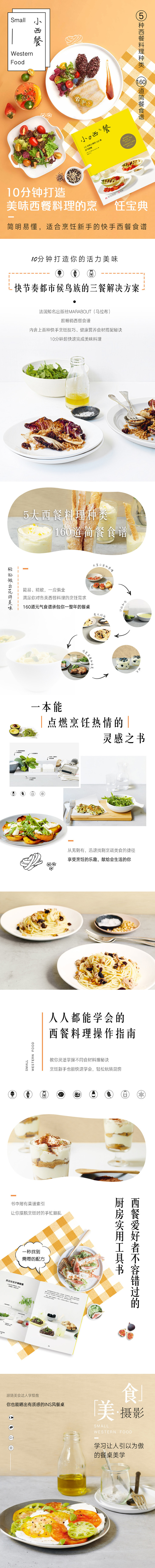 《小西餐——10分钟上桌的160道元气西餐》是一本讲解如何快速烹饪出美味西餐料理的书。书中展示了160道西餐简餐食谱,讲解了如何在10分钟内用5种食材配料烹饪出这些美味菜品的方法。包括美味的芝士汉堡在内的30道左右的零嘴小食的烹饪方法,35道美味沙拉和汤的烹饪方法,30道经典的意大利面的烹饪方法、35道肉类、小海鲜的烹饪方法,30道诱人甜点的烹饪方法。同时,作者总结了10分钟上就能上桌的元气小西餐之秘诀:优质食材——在储藏柜里准备好新鲜、优质的食材,食材的质量与口味是绝不能马虎的;合理统筹——按照书中的食谱来烹饪,可以迅速找到通向烹调美食的捷径;熟能生巧——正所谓凡事百炼自得。足够的练习,会让您的厨艺日臻完美!《小西餐——10分钟上桌的160道元气西餐》讲解易懂,容易实践,图片精美,这对于那些想要快速和方便地准备一日三餐的人来说是不可多得的参考书。
