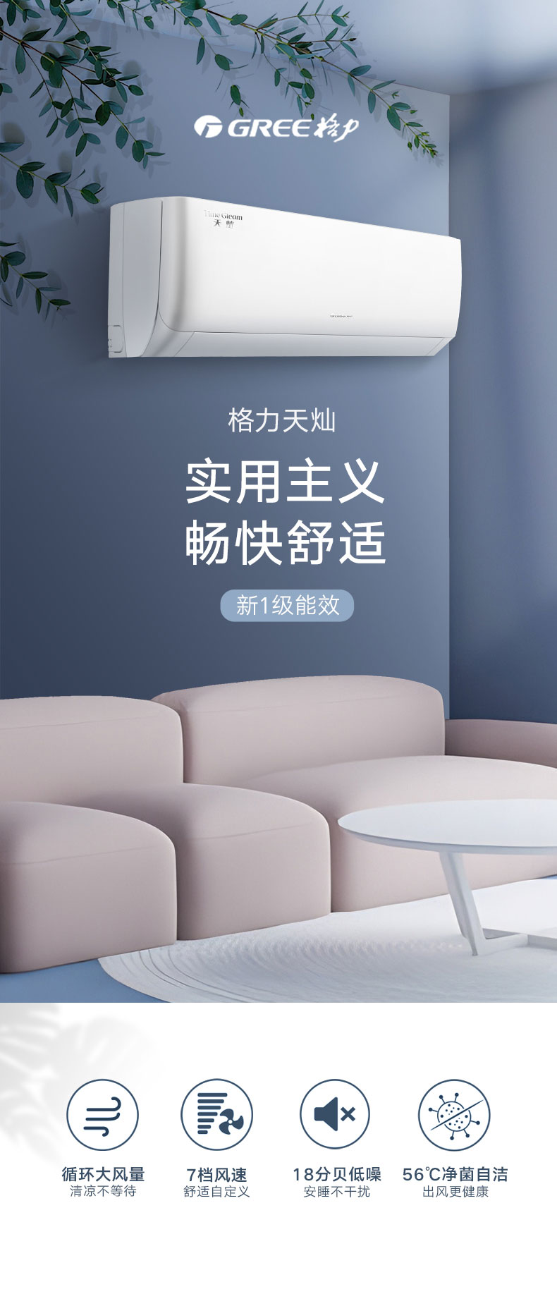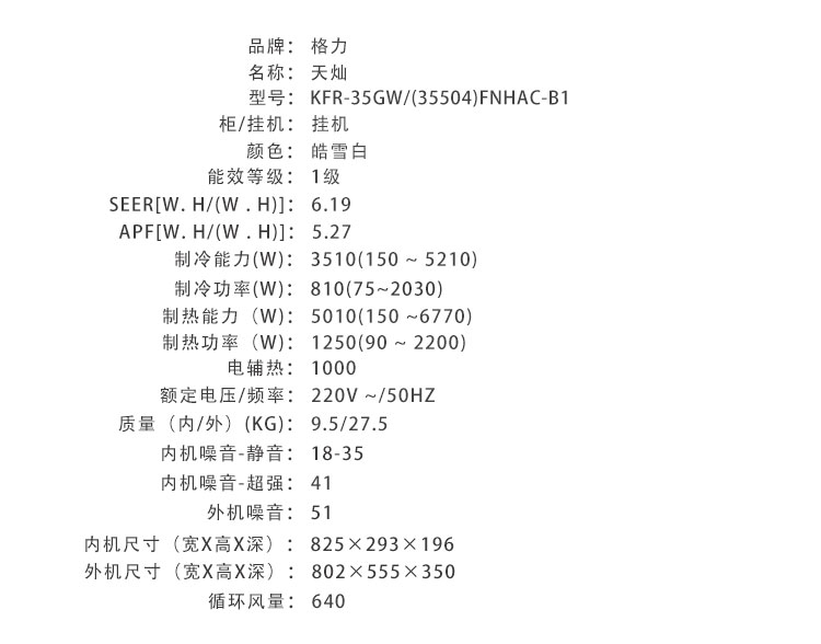 格力·天灿 变频冷暖1.5匹新一级能效挂机空调 KFR-35GW/(35504)FNhAc-B1(皓雪白)