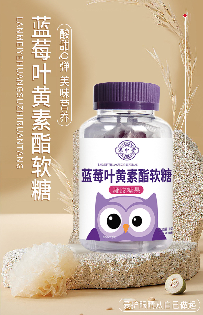 【买二送一!蓝莓叶黄素酯软糖】酸甜Q弹美味有营养,酸甜可口,用眼过度,学生儿童青少年零食果汁水果新式软糖果