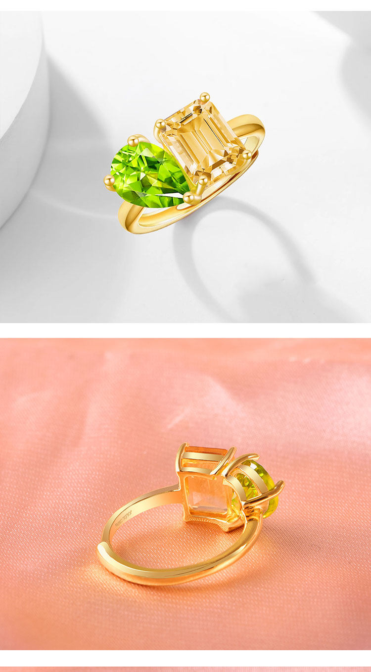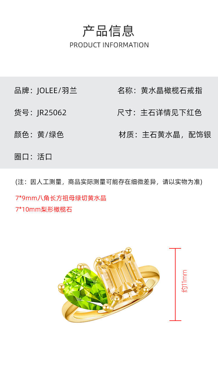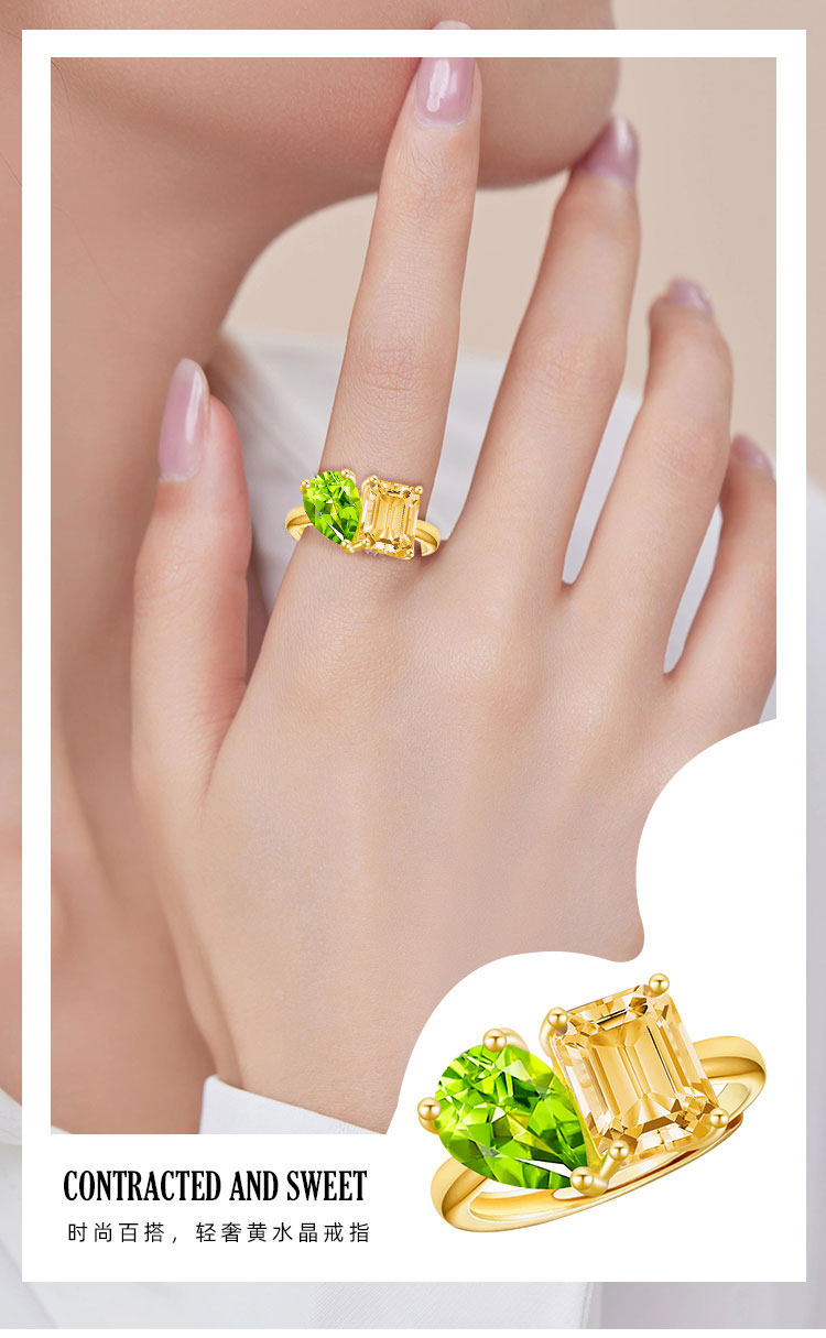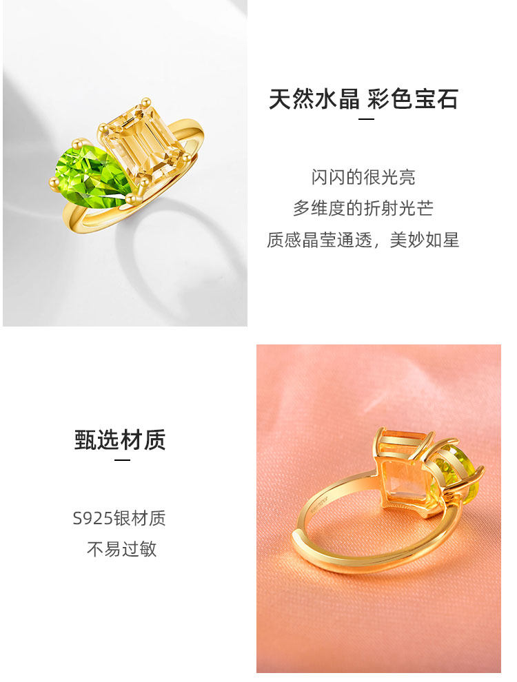 【黄水晶均码橄榄石戒指】周六(3.21)中午12点开始 S925银彩色宝石首饰品送女士礼物JR25062-水晶CC