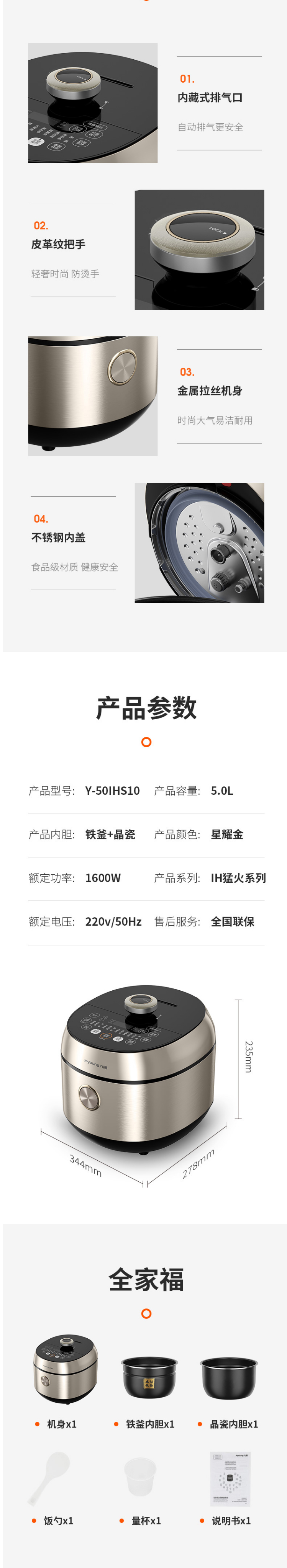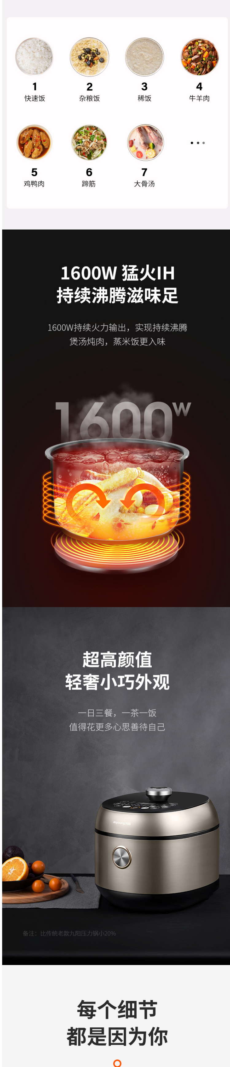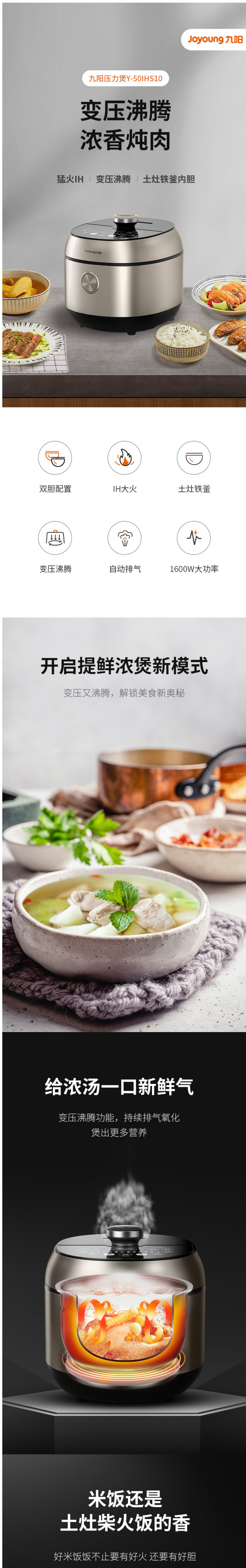 九阳(509589 )(Joyoung) IH加热 自动排气 电压力锅5L双胆压力煲全程沸腾肉香汤浓上置界面高端 50IHS10