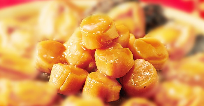 盆菜最顶层的瑶柱像一粒粒金黄色的宝石选用80头高级别的原粒瑶柱在盆菜汁的包裹下,只只鲜甜浓郁。