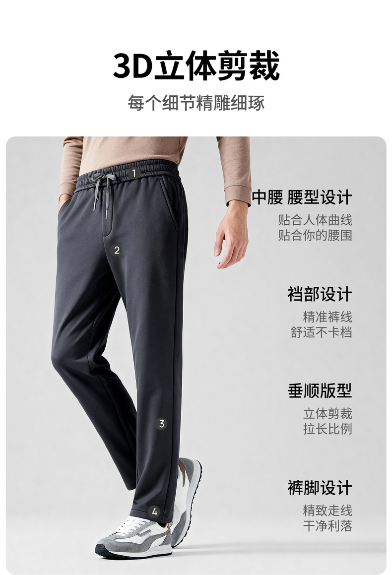 圣得西2025年冬季男士休闲松紧直筒长裤高弹零压感易打理休闲裤