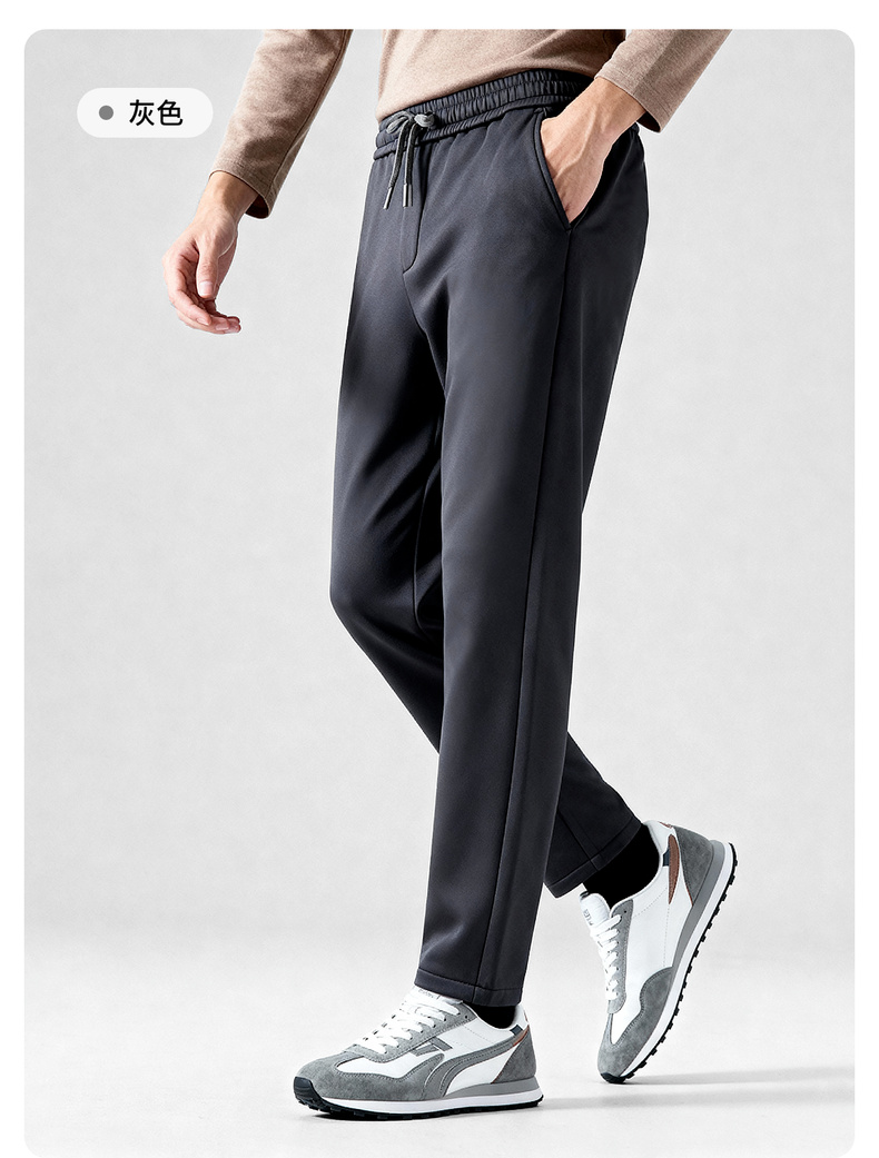 圣得西男士2025年秋季新款磨毛加厚毛呢混纺简约直筒保暖休闲长裤