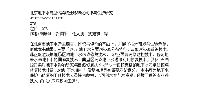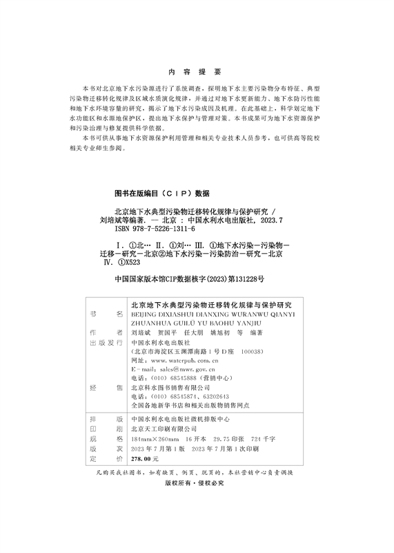 北京地下水典型污染物迁移转化规律与保护研究