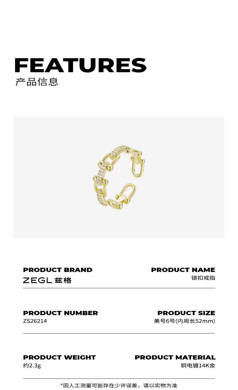 ZEGL马蹄扣戒指女复古小众设计日式轻奢指环食指戒时尚个性开口戒