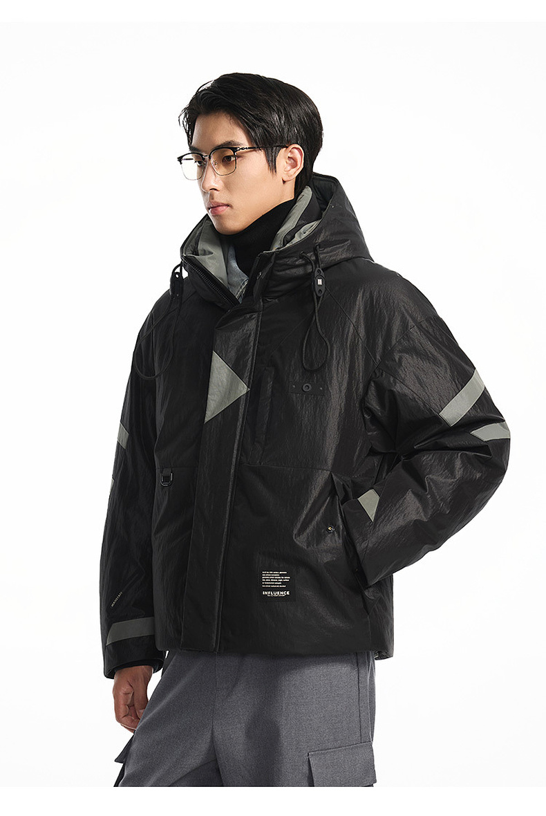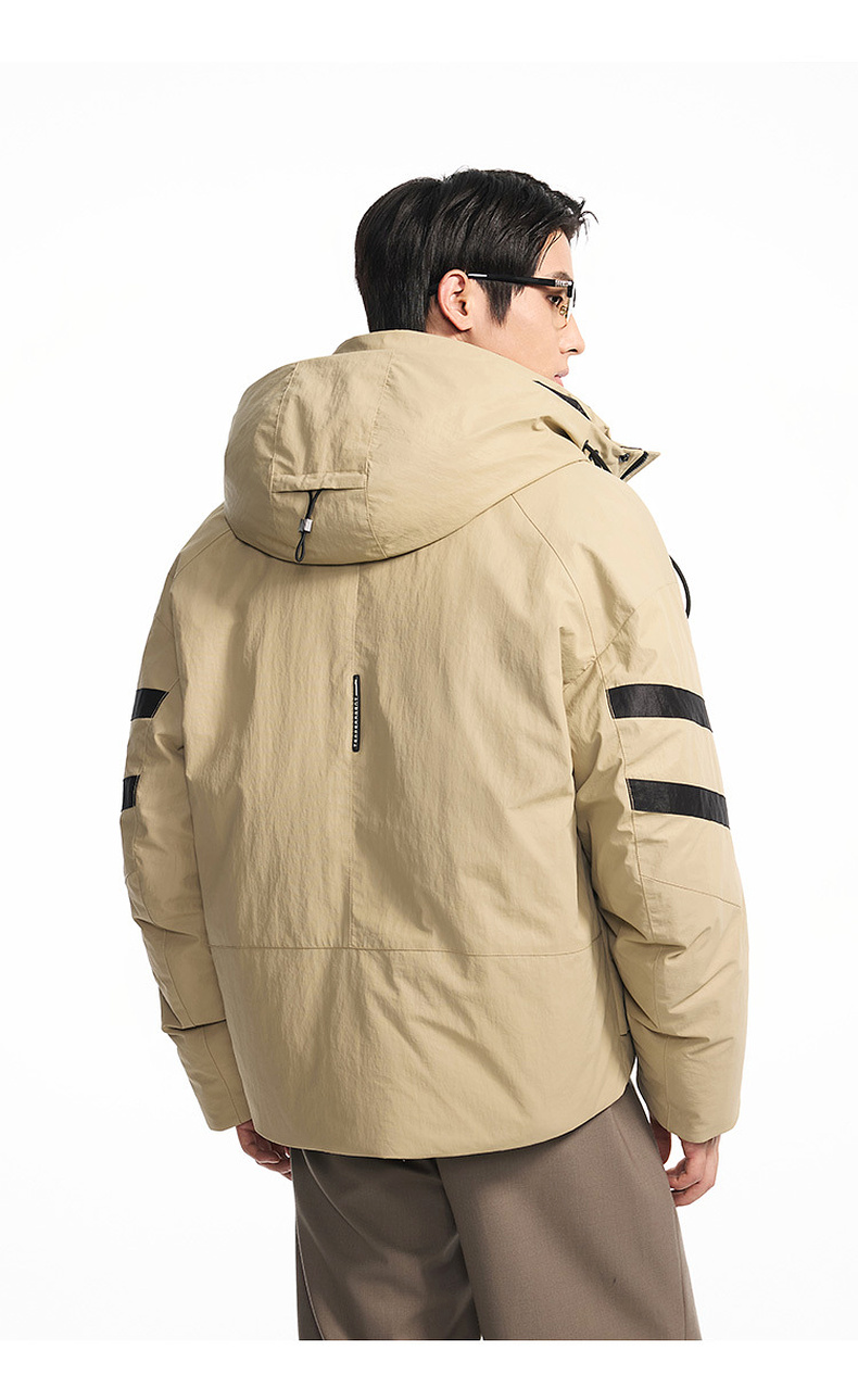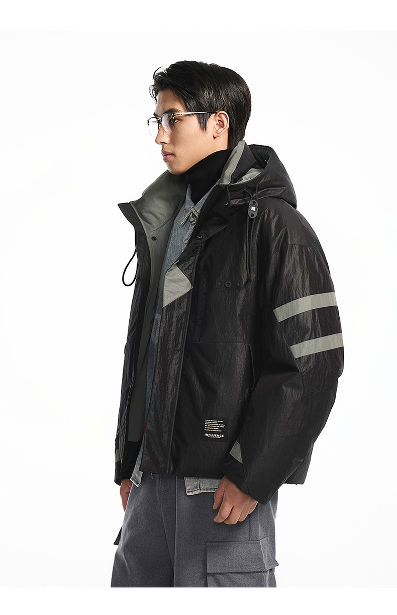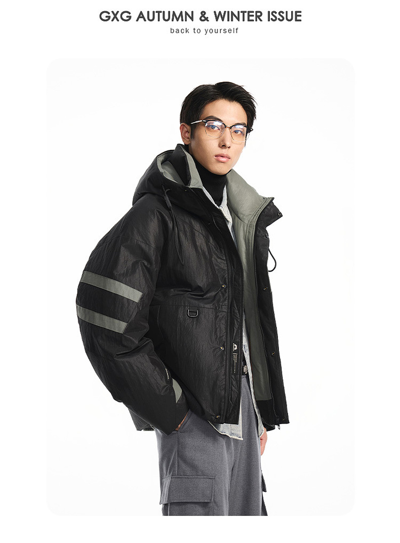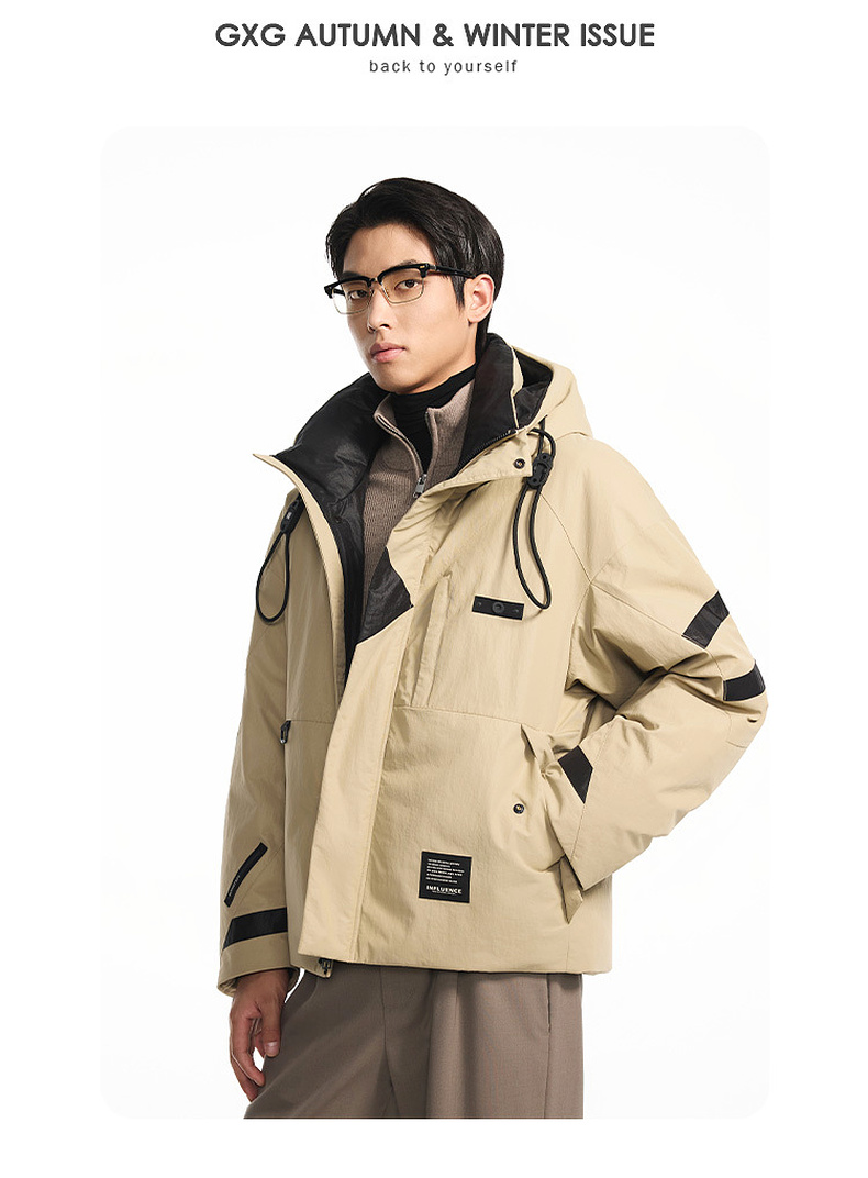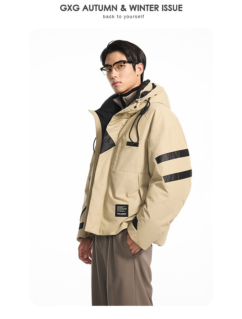 GXG男装【85鸭绒】冬季时尚撞色拼接抽绳连帽防男式短款羽绒服K&C