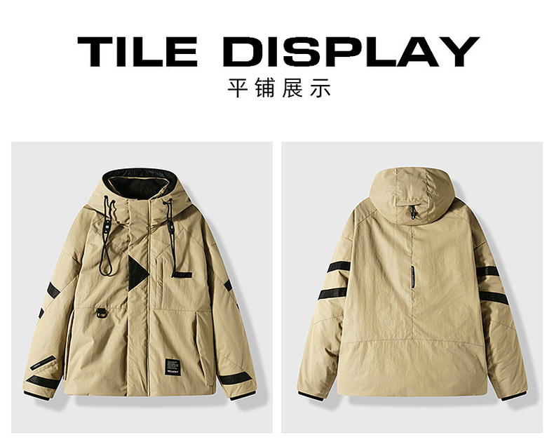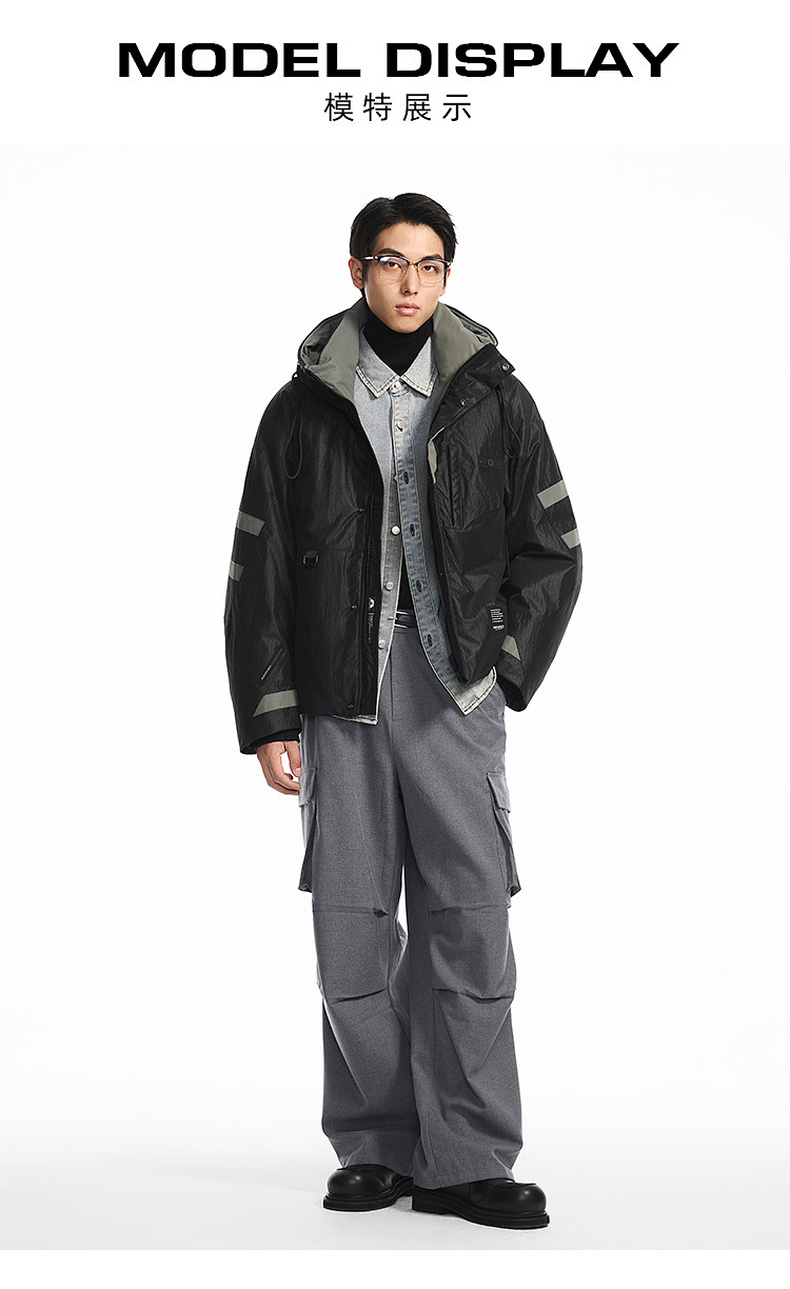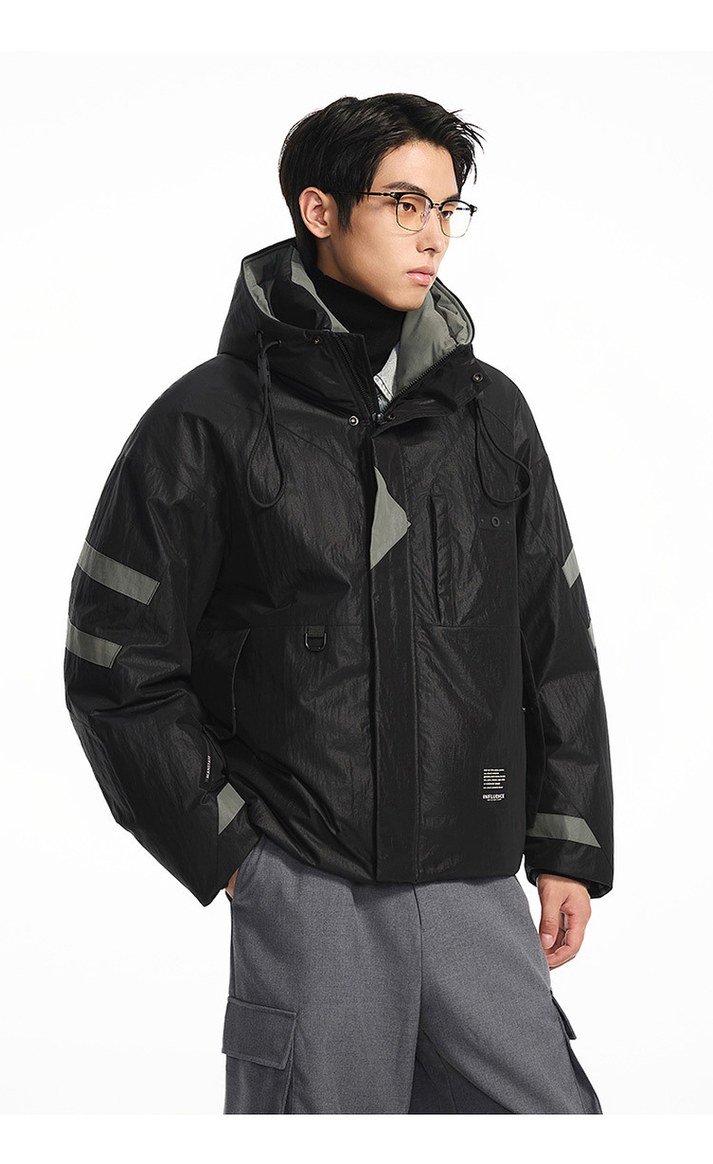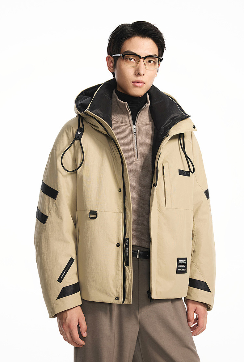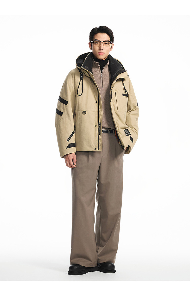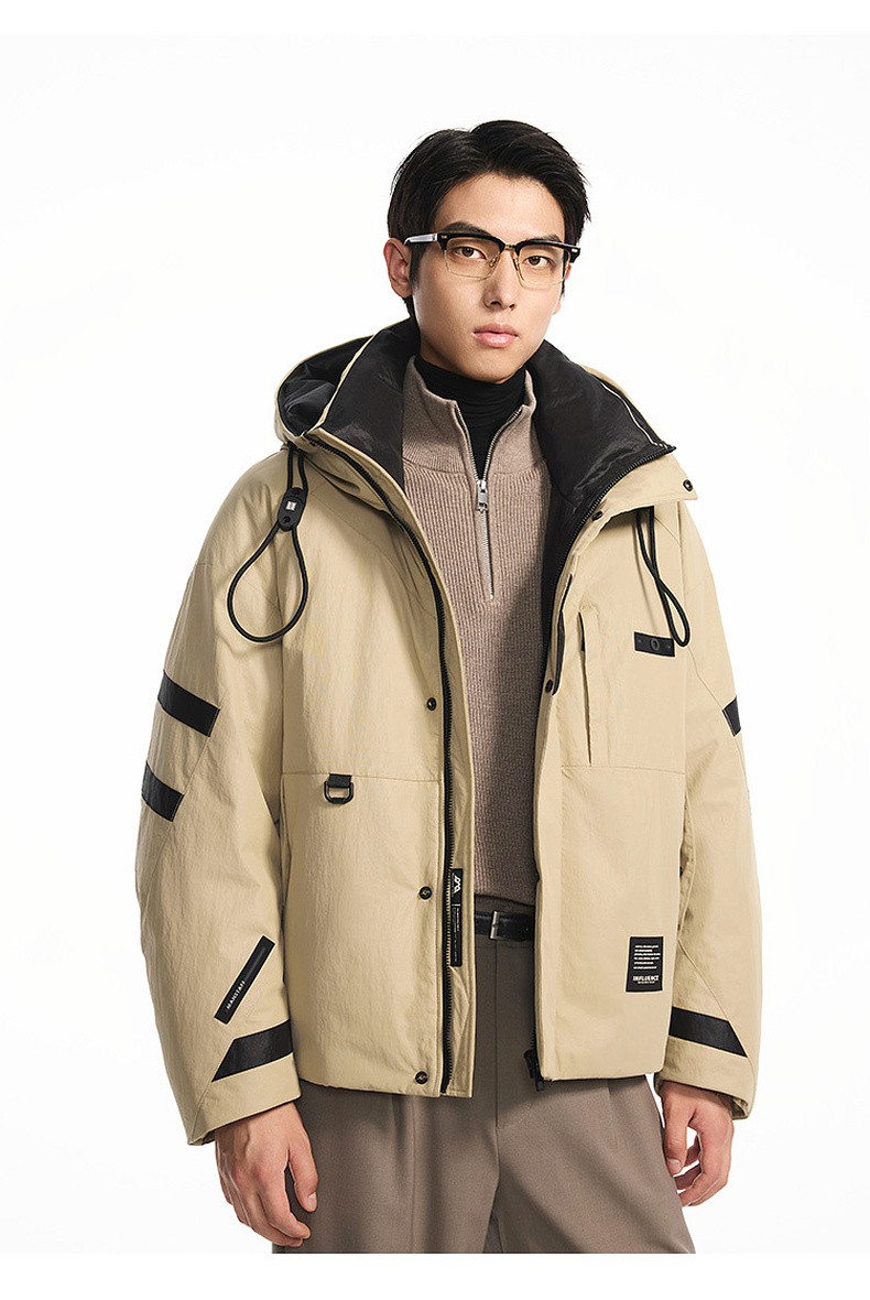 GXG男装【85鸭绒】冬季时尚撞色拼接抽绳连帽防男式短款羽绒服K&C