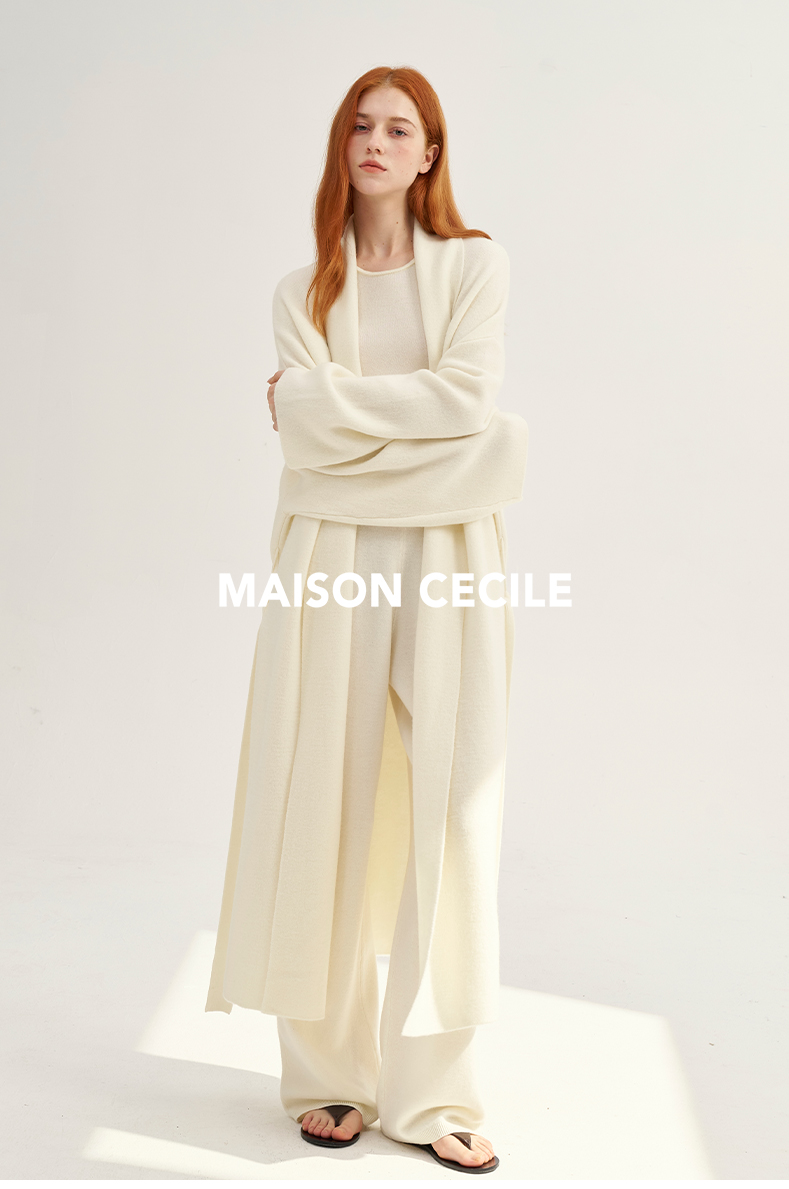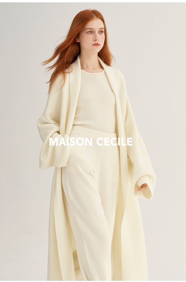 MAISON CECILE重磅织法紧密高克重软糯亲肤浴袍式针织开衫