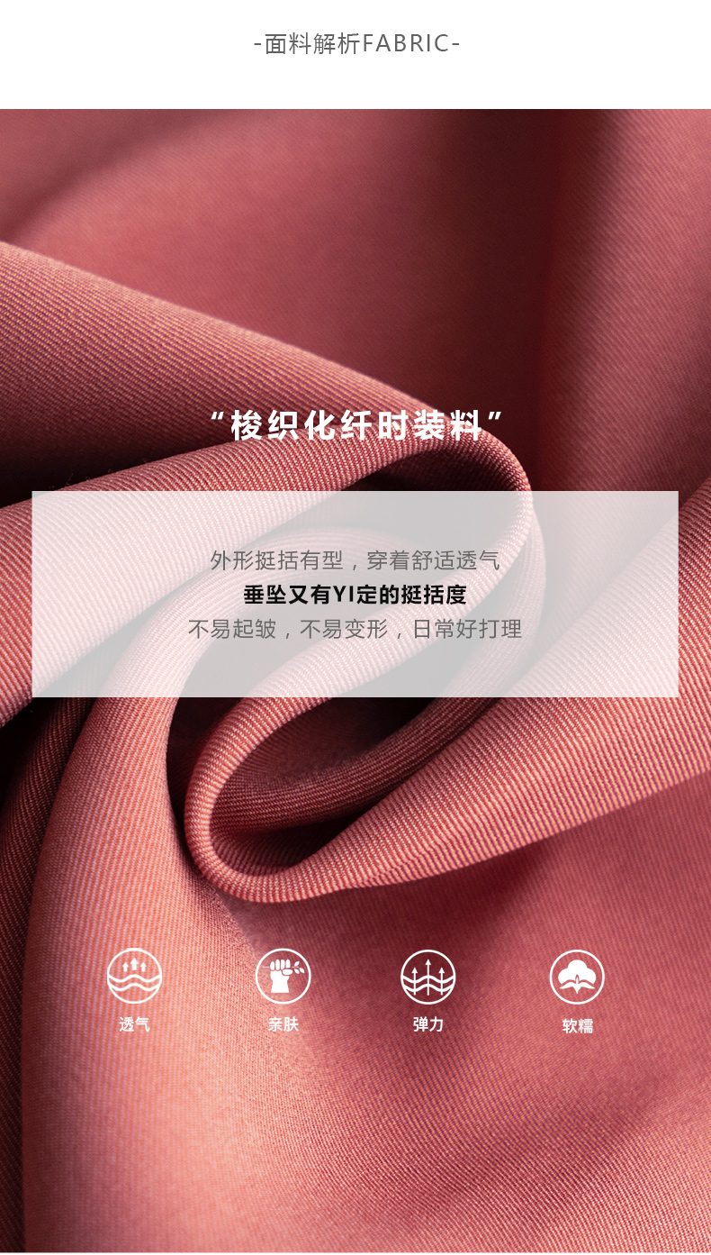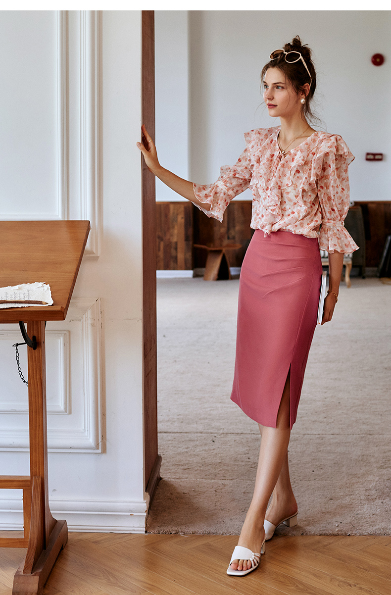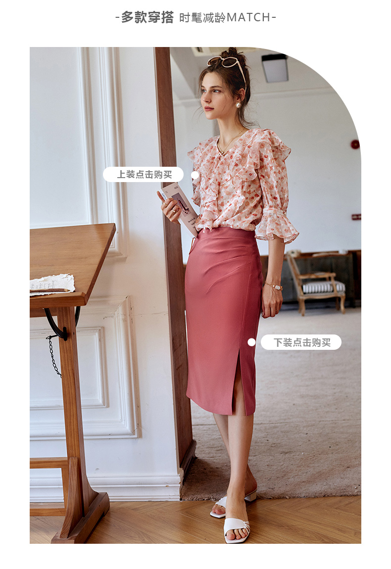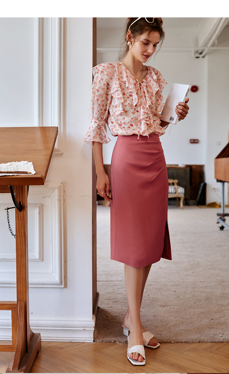 欧芮儿砖红色半身裙女2021新款高腰显瘦不规则褶皱开叉直筒裙