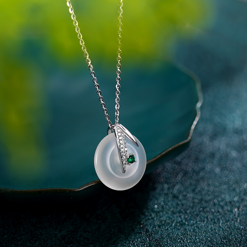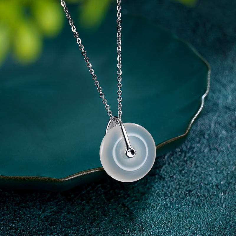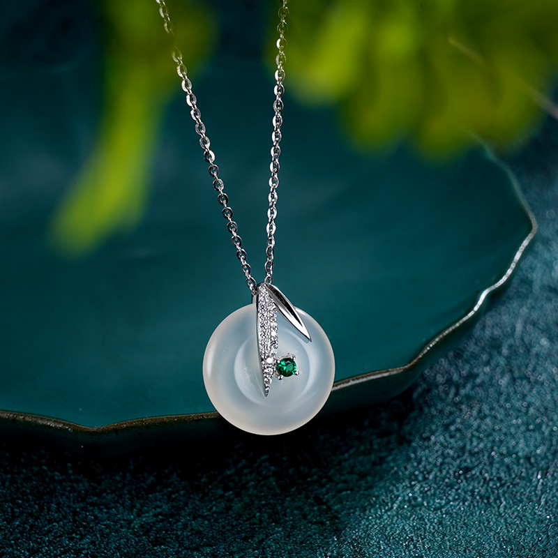 子佩集S925银【玉竹念空】套链【XL040217】纯银时尚白玉髓平安扣竹节项链2406