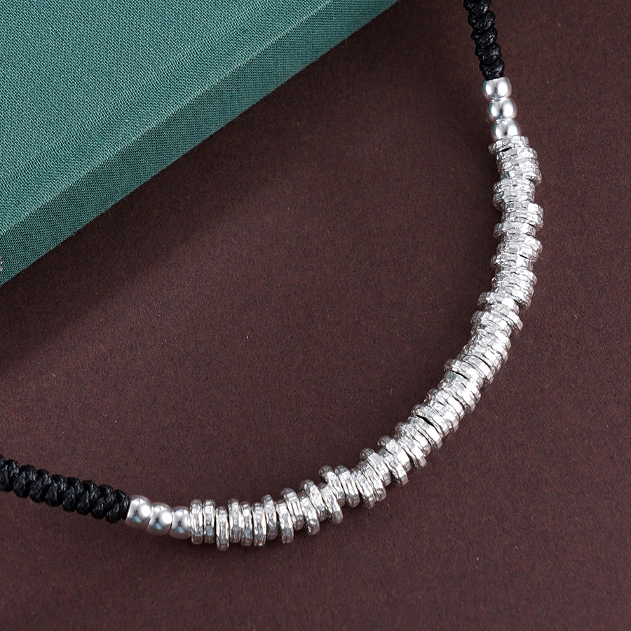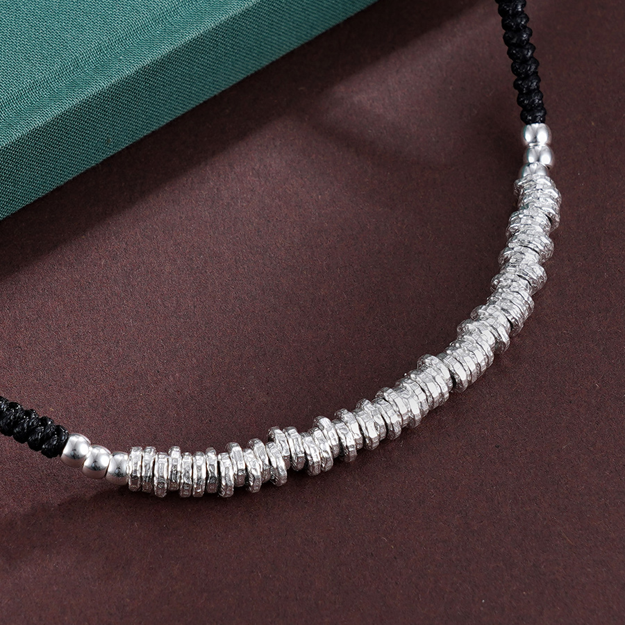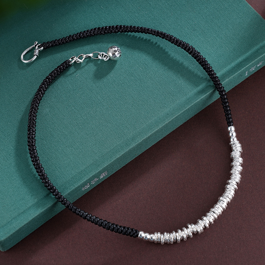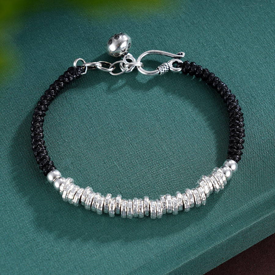 【寓意】:作品由碎银组合而成,通过编织绳糅合搭配,古韵延绵,造型百搭不挑人。