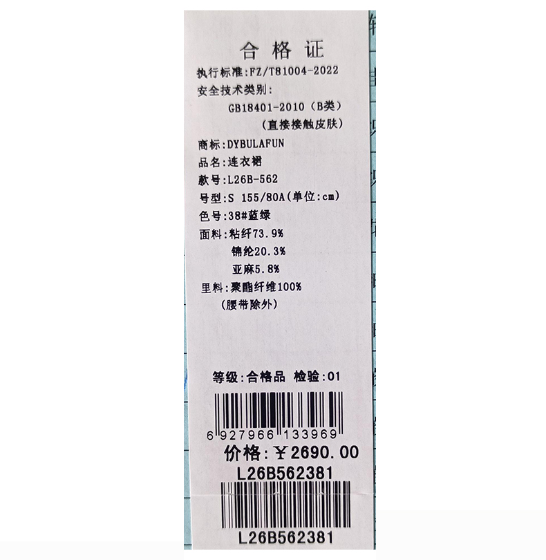 @QQH戴布拉芬连衣裙L26B562