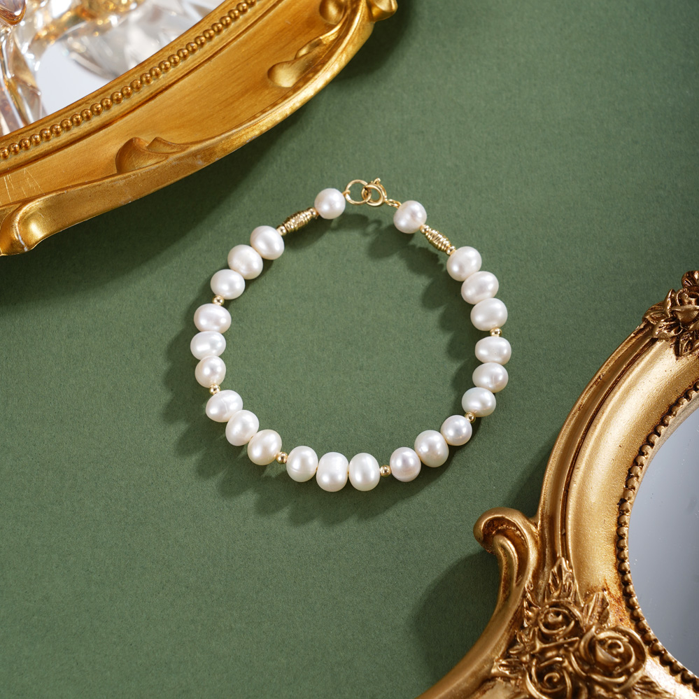 子佩集【柔光女神】珍珠惜王妃手链【ZZSL014】5.8*7mm珠镀金管2601