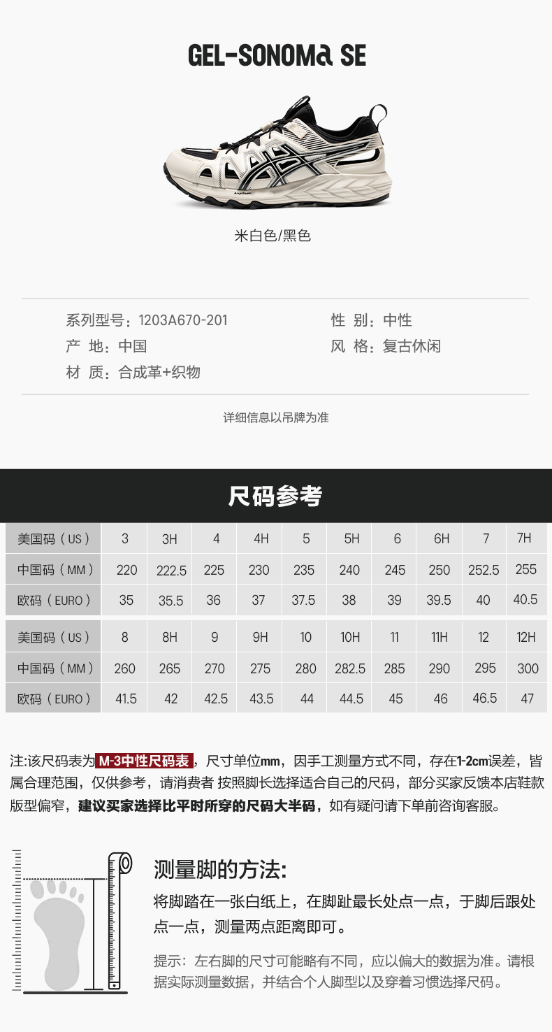ASICS亚瑟士运动凉鞋GEL-SONOMA SE男女鞋时尚舒适复古运动情侣休闲鞋1203A670-020