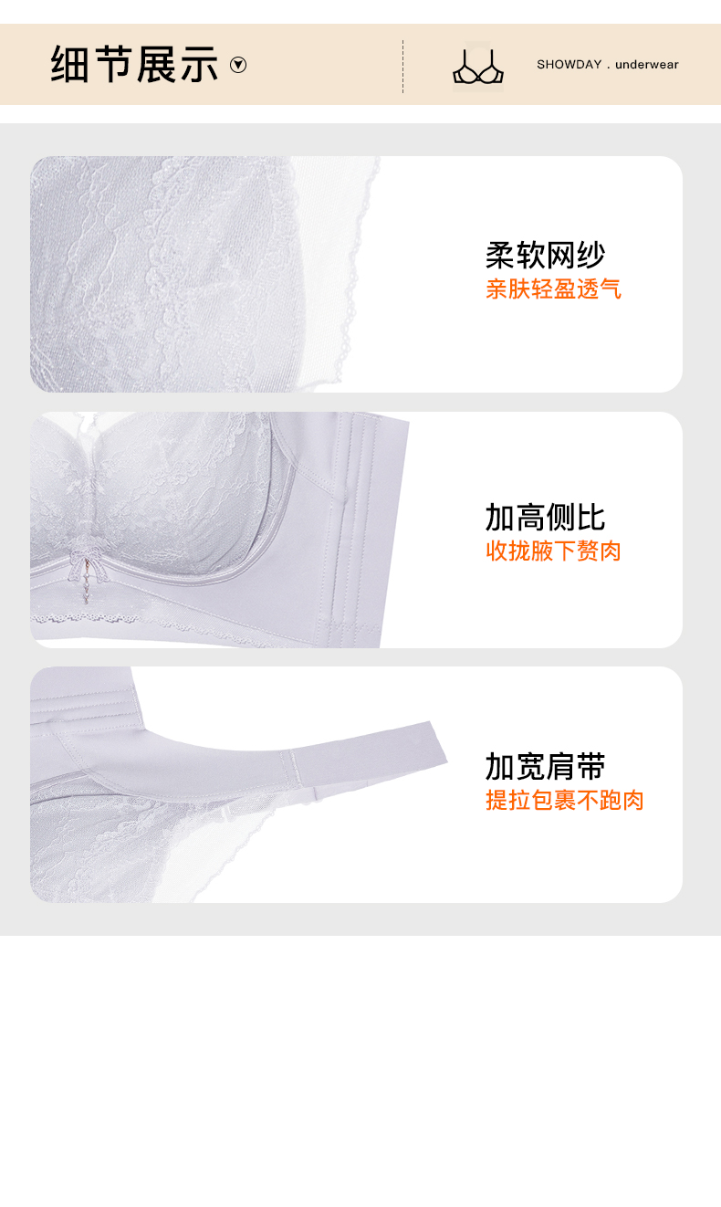 【7.5折限时特惠】主推【B杯单件】【秀黛】和风花雨无钢圈中薄杯文胸五排扣W5110003B【门店同款】