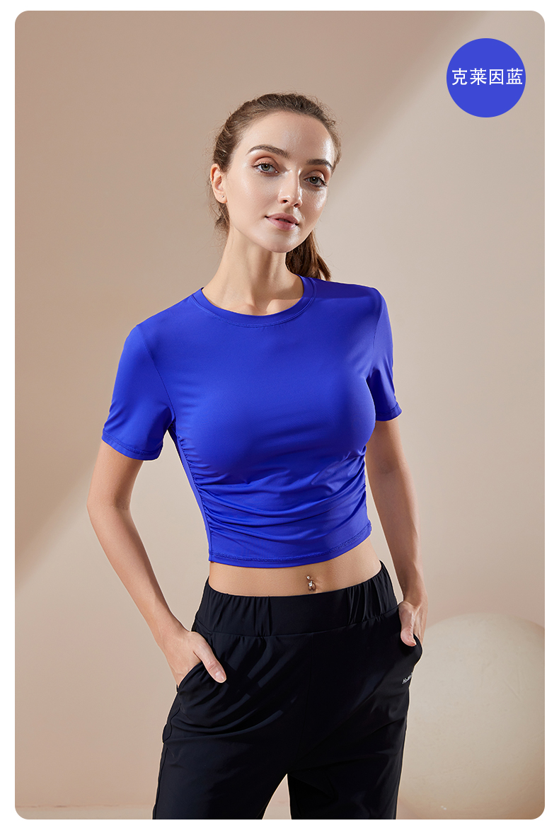 《七夕特惠 不退不换》哈瓦塔亲肤裸感褶皱速干短袖上衣(无胸垫)