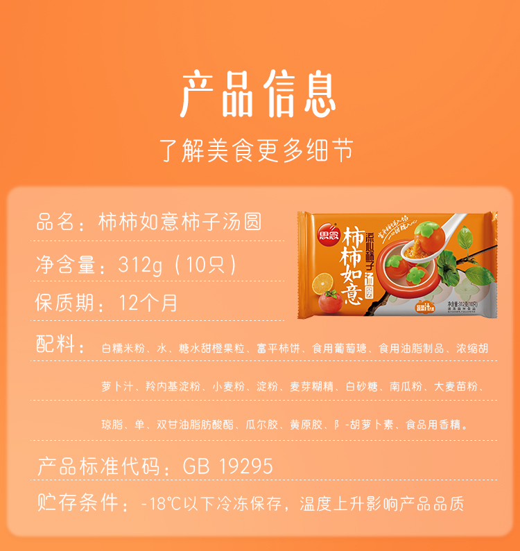 【思念】312g(31.2g)柿柿如意流心柿子汤圆*2