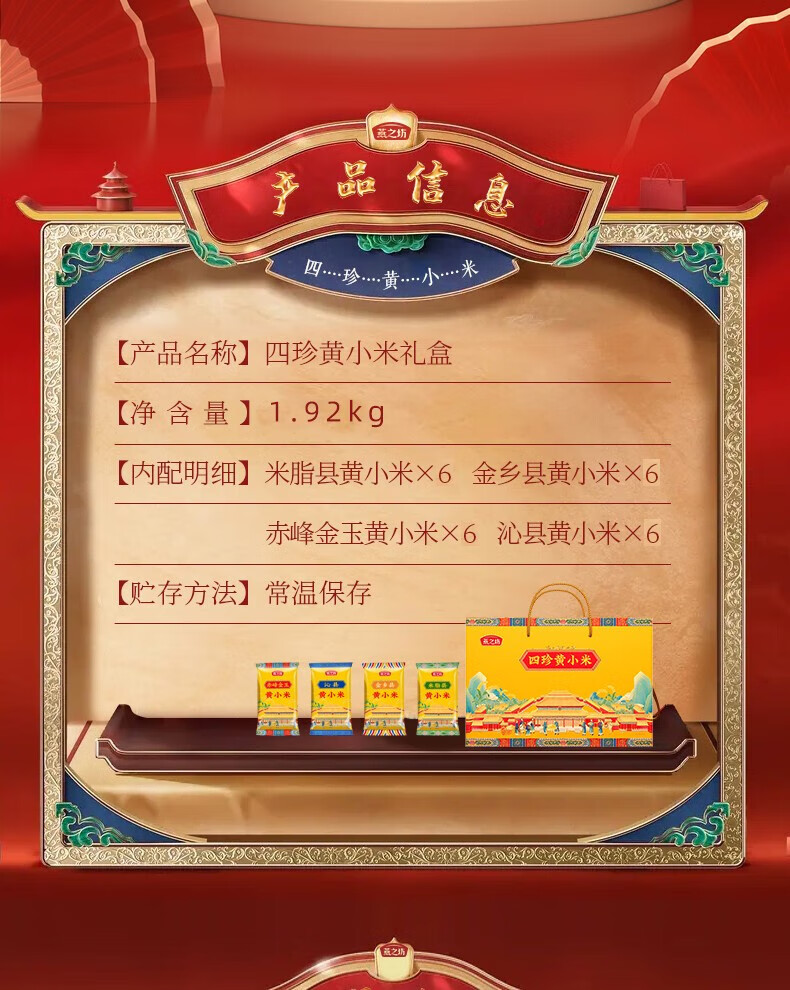 燕之坊专柜同款四珍黄小米礼盒1.92kg 小米粥家庭早餐煮粥杂粮