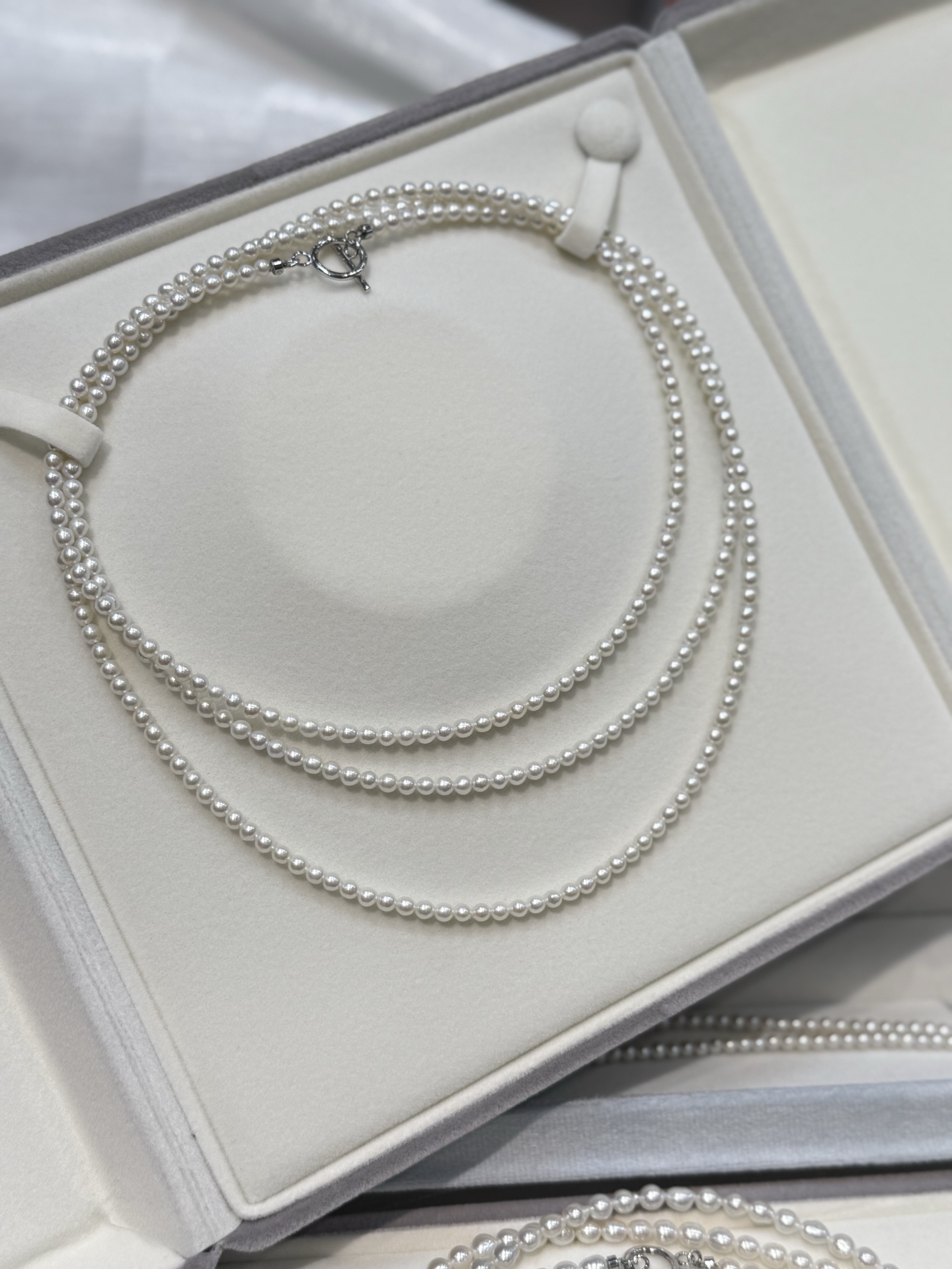 3.5-4mm baby珠120cm长链, 日常戴戴还是很好, 春夏秋冬四季皆宜, 搭配任何服装都能完美修饰, 这个价格很实惠! 需要更高品质可定制更高品质的