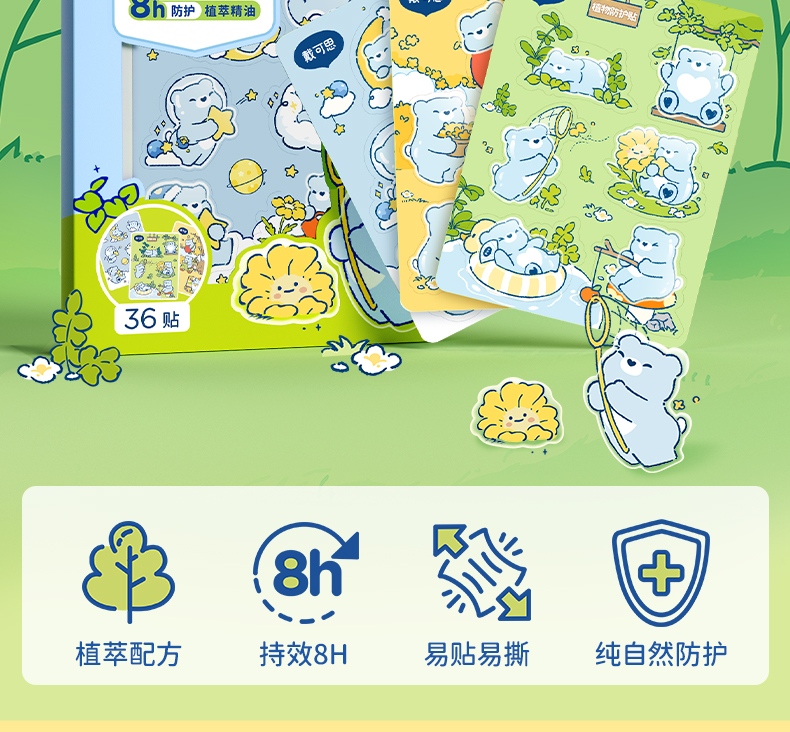 【戴可思推荐】植物防护驱蚊贴(36贴/盒)植萃配方 0岁+全家适用