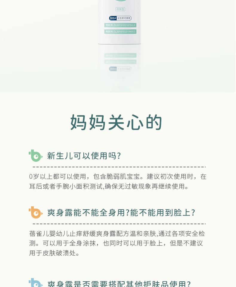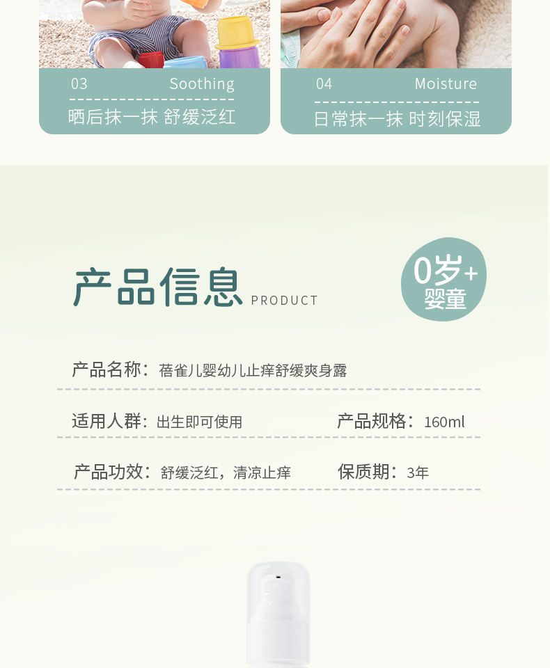 蓓雀儿婴幼儿止痒舒缓爽身露160ml 0-3-6岁宝宝润肤露儿童止痒液