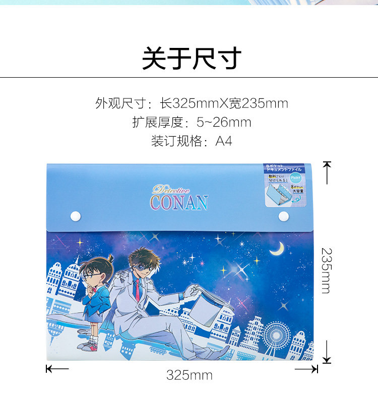 日本进口CRUX柯南限定款名侦探柯南联名款学生A4文件收纳夹 试卷 风琴文件袋