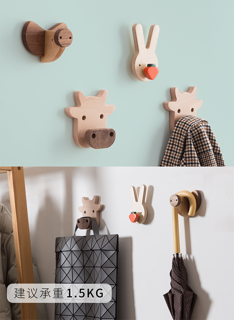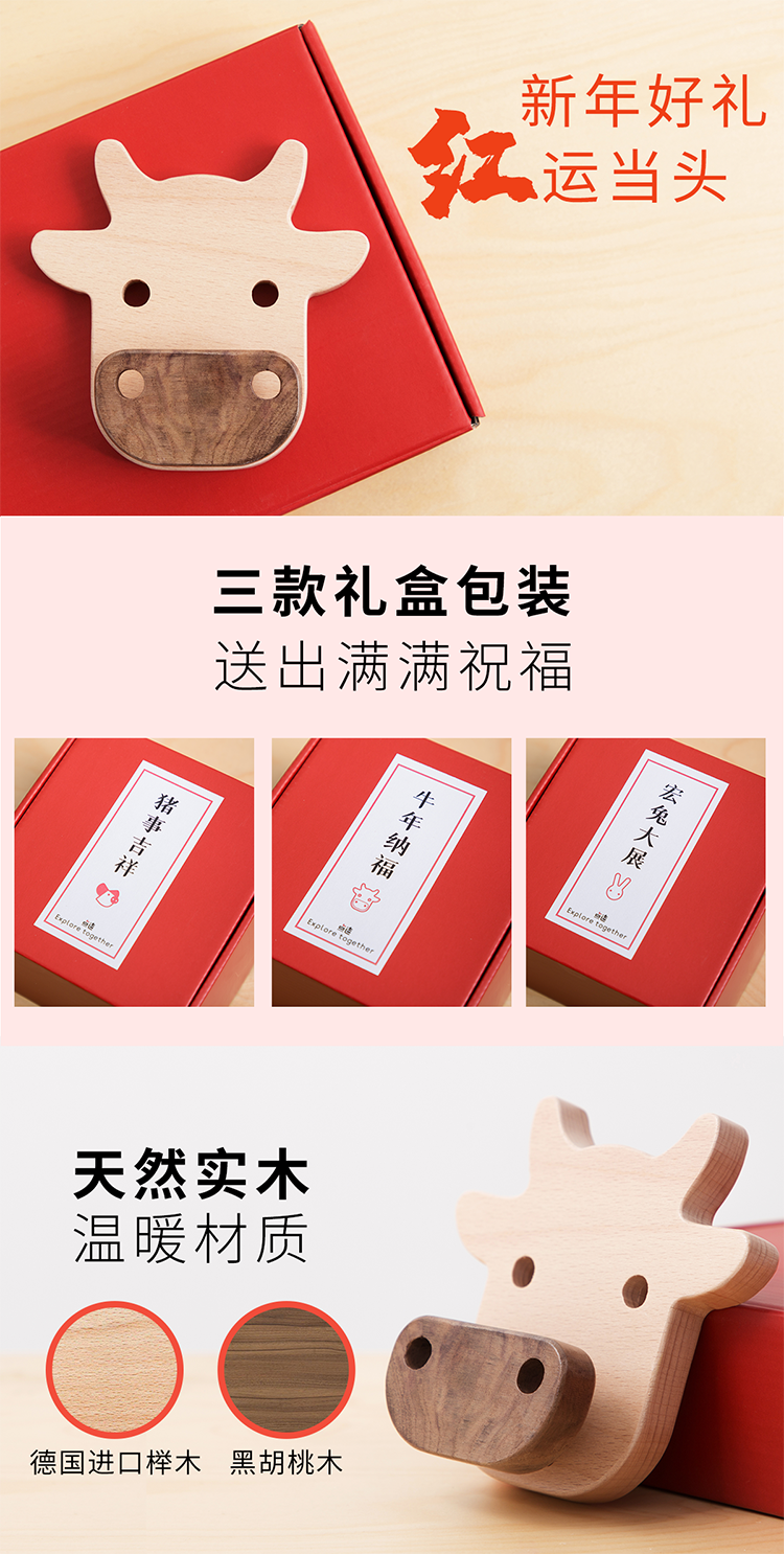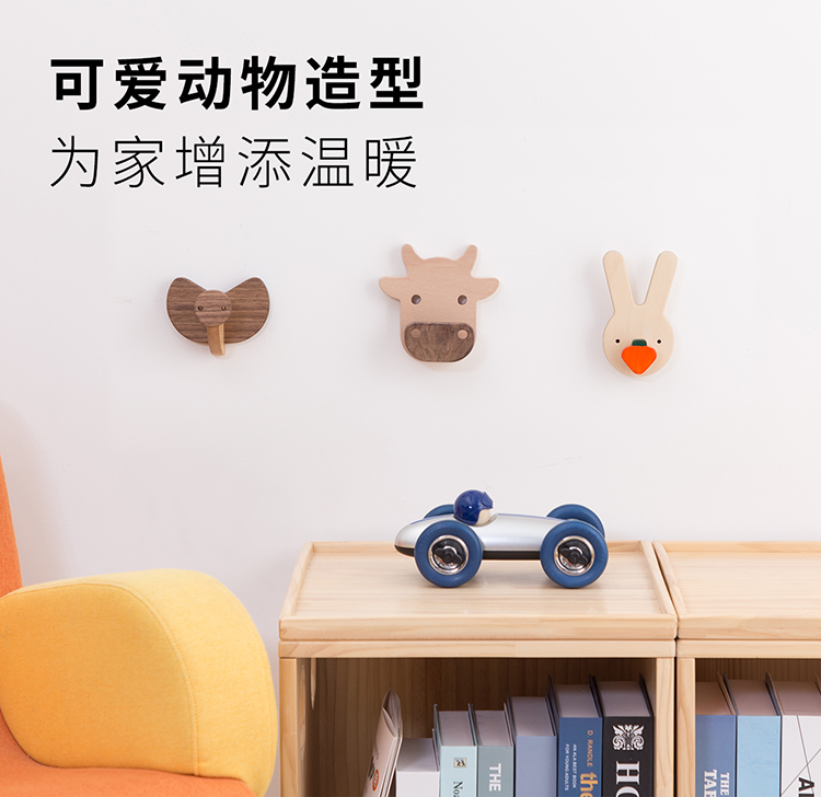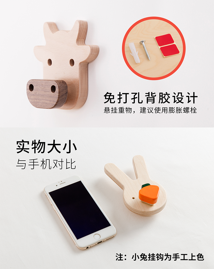 【LensforKids推荐】点造 实木免打孔可爱小牛挂钩(3日内发货)
