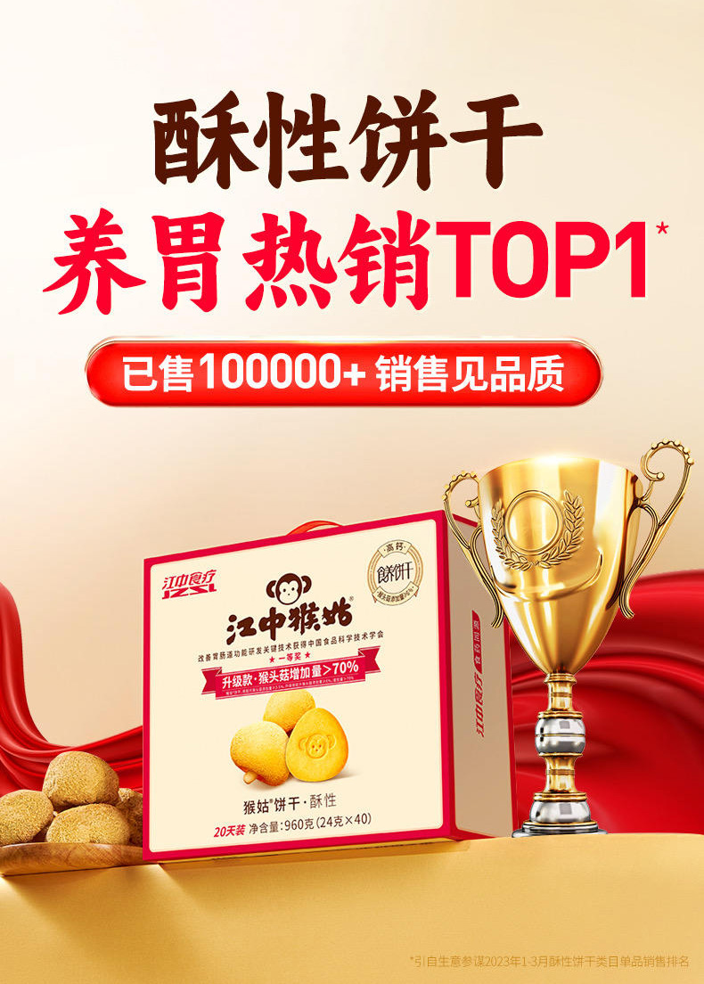 江中猴姑饼干有糖酥性20天装960g礼盒款 猴头菇养胃零食老年人营养品送礼盒长辈 新货生产 保质期15个月 饼干易碎 介意慎拍
