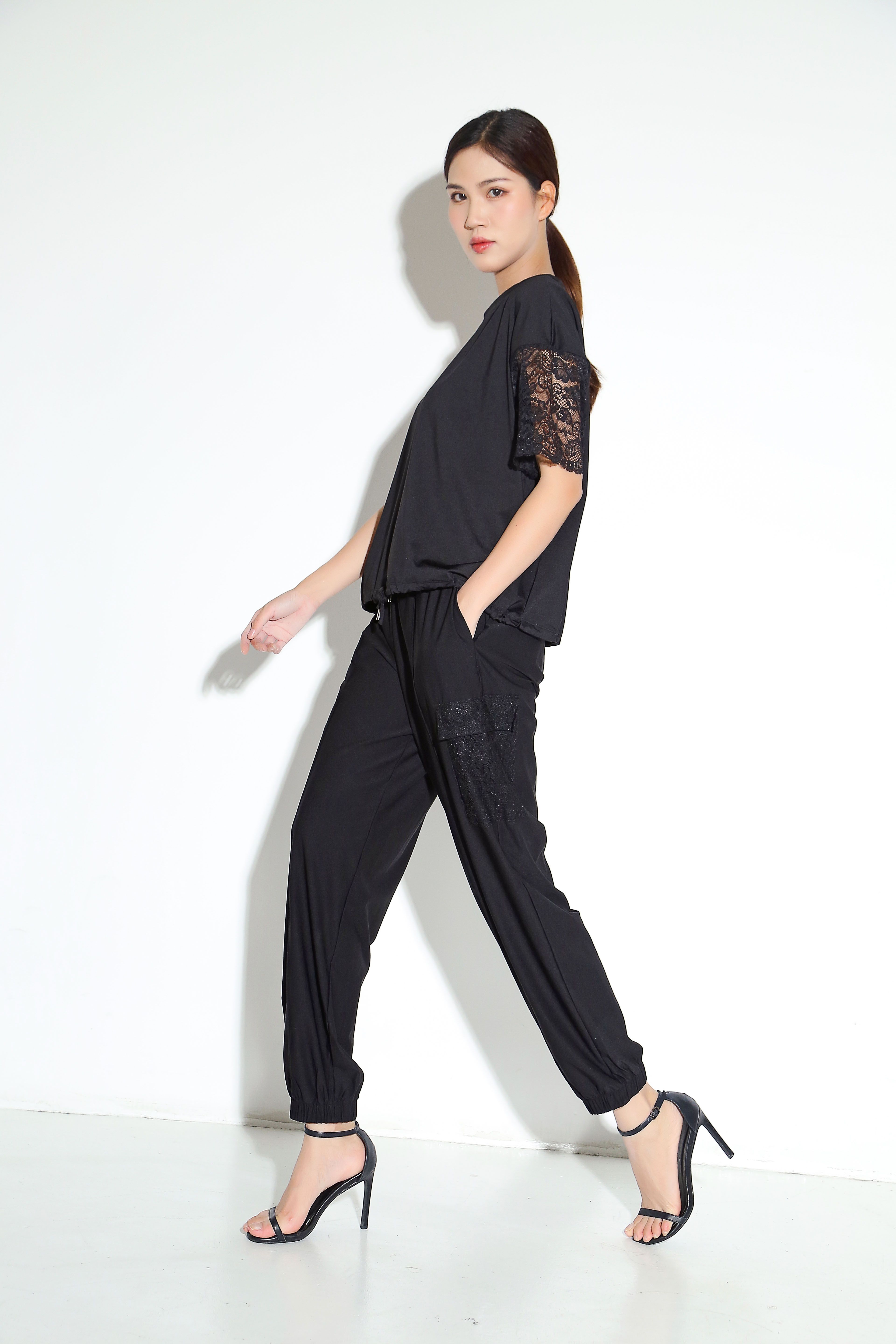 舒适冷感蕾丝工装束脚裤套装29206/7235