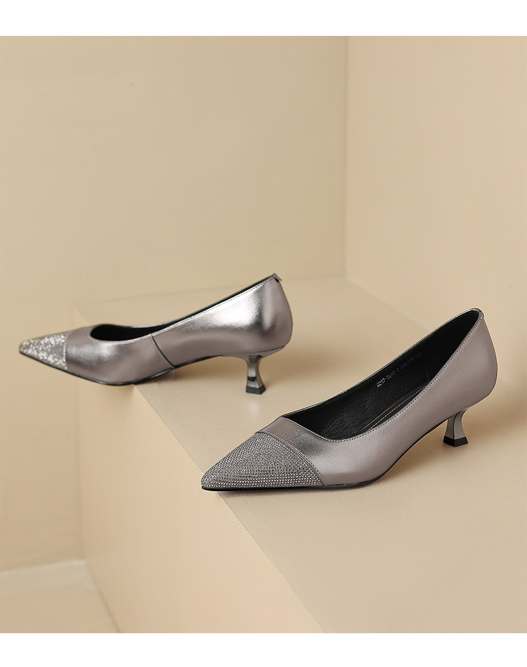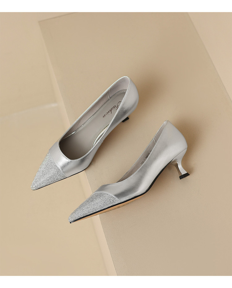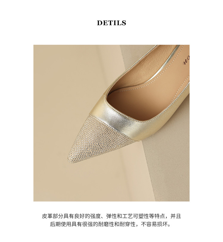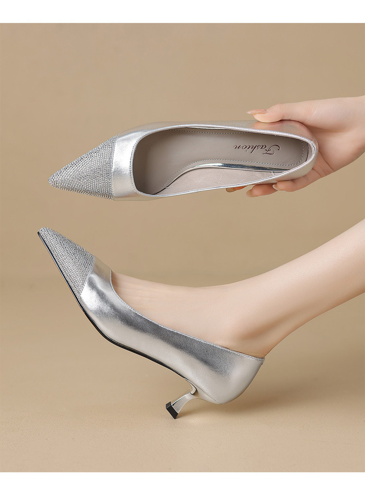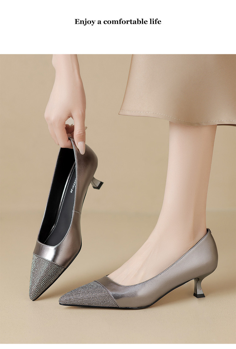 【预售5天】优雅细跟水钻尖头百搭通勤职场浅口气质高跟鞋YS&7106
