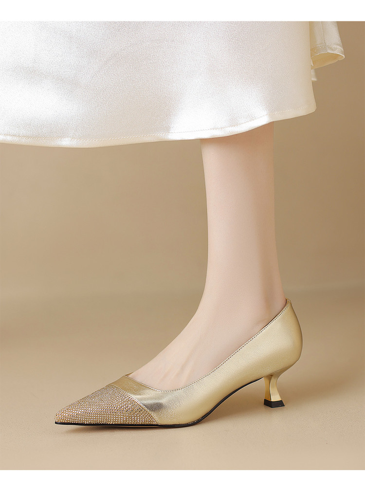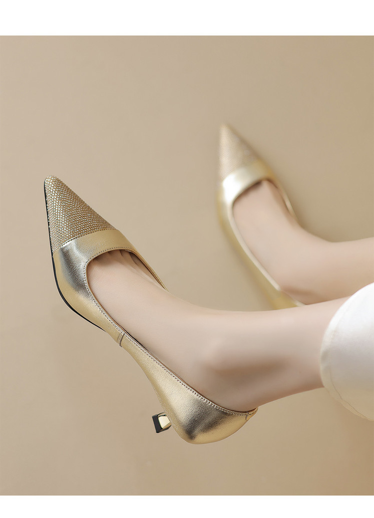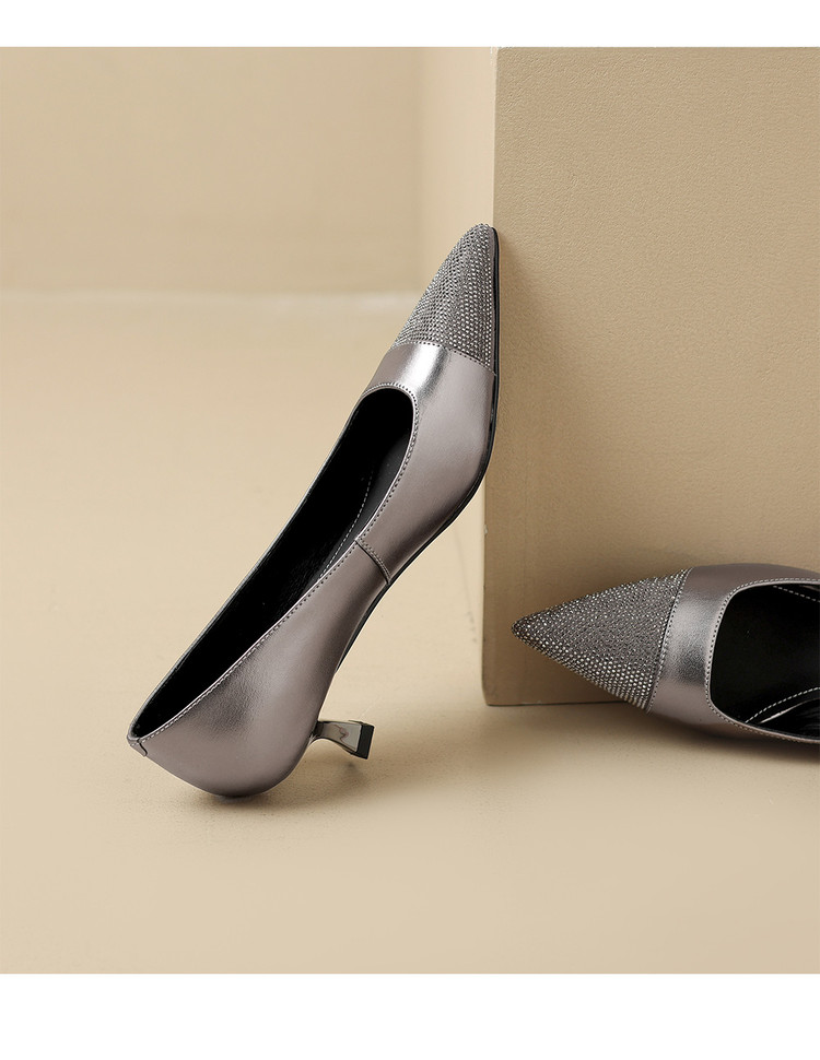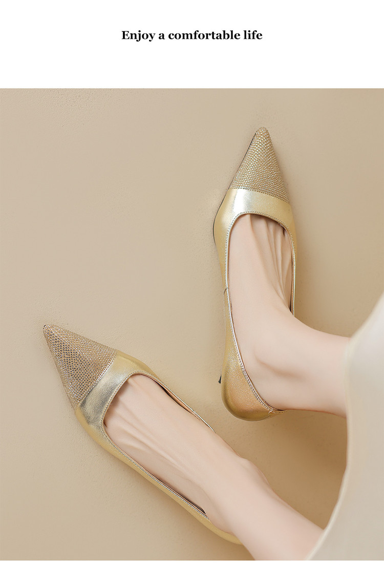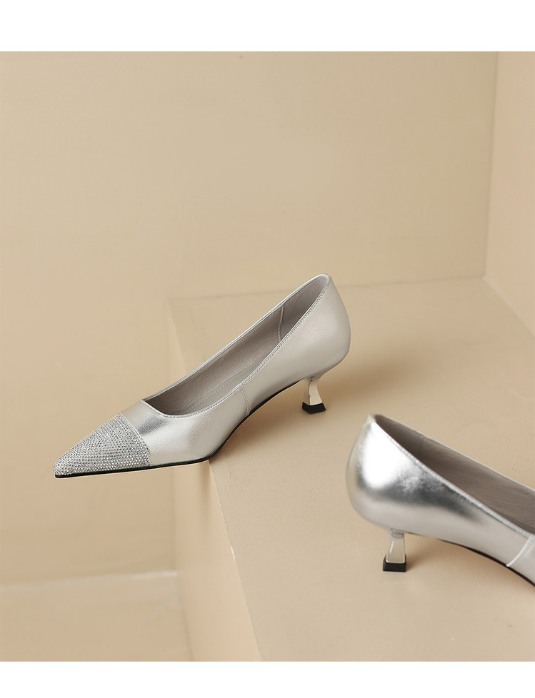 【预售5天】优雅细跟水钻尖头百搭通勤职场浅口气质高跟鞋YS&7106