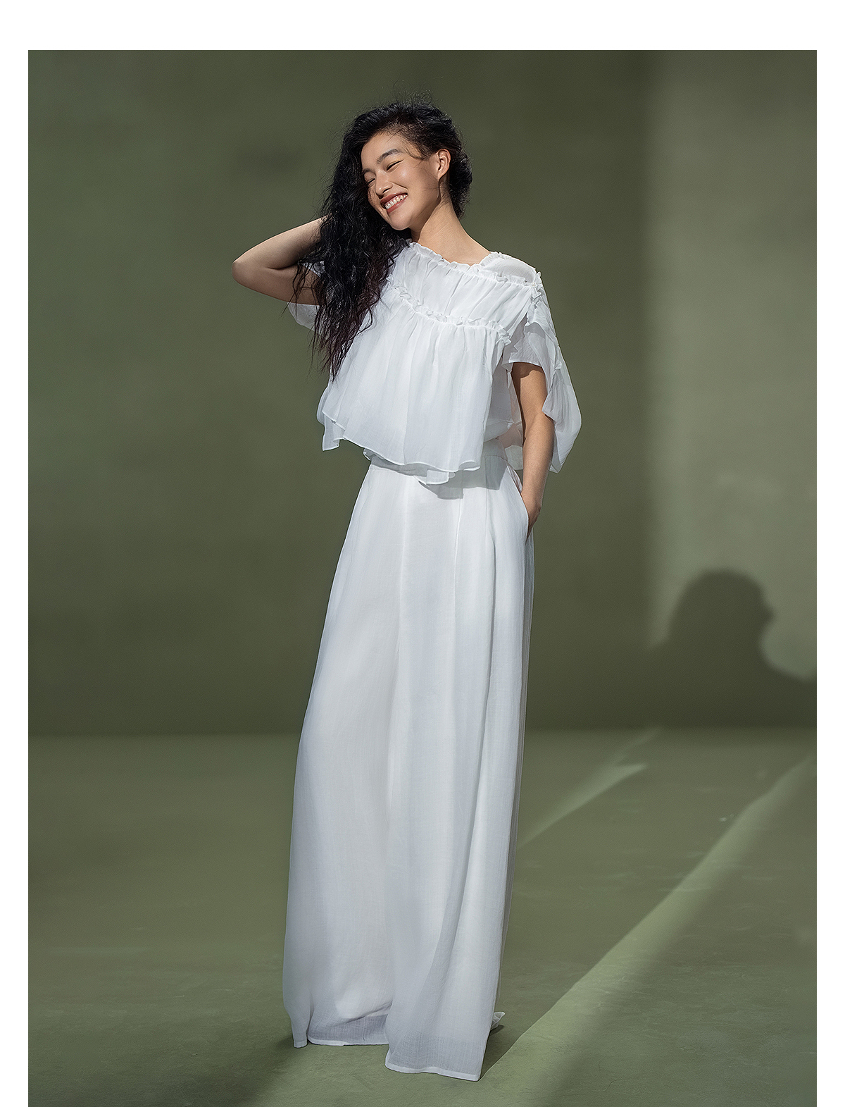 【林栖设计小店】一剪闲云|米白色苎麻宽松显瘦三件套2026夏新款花边套装1962053B