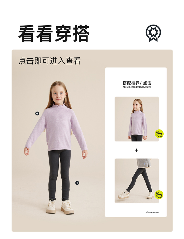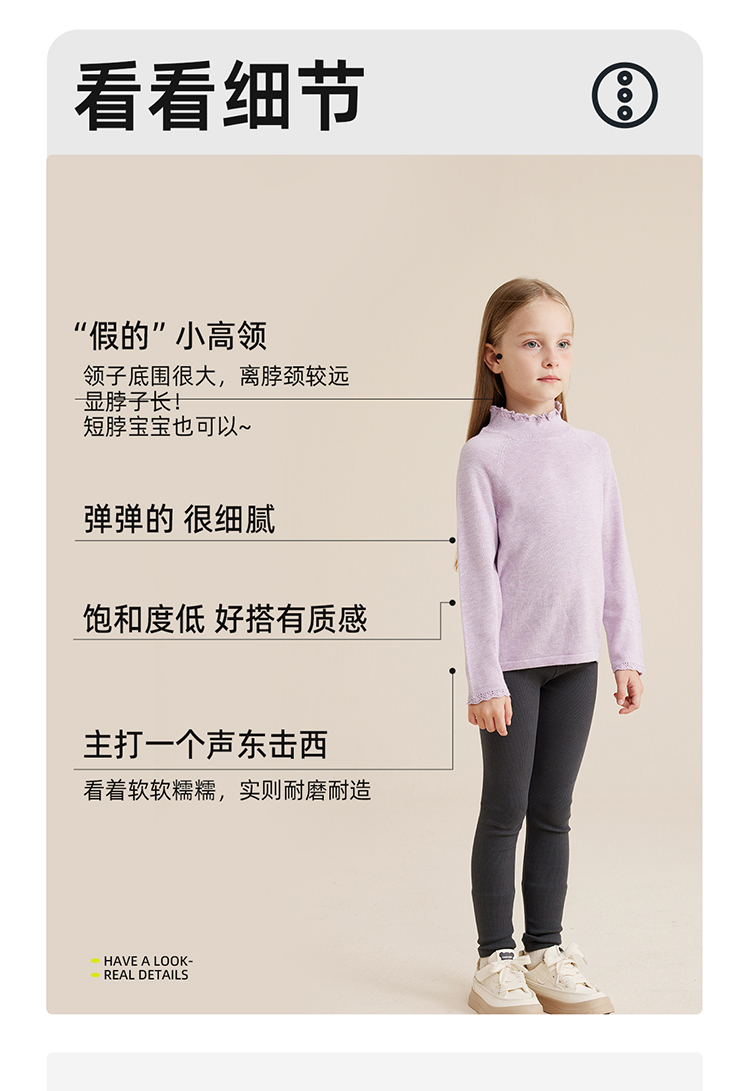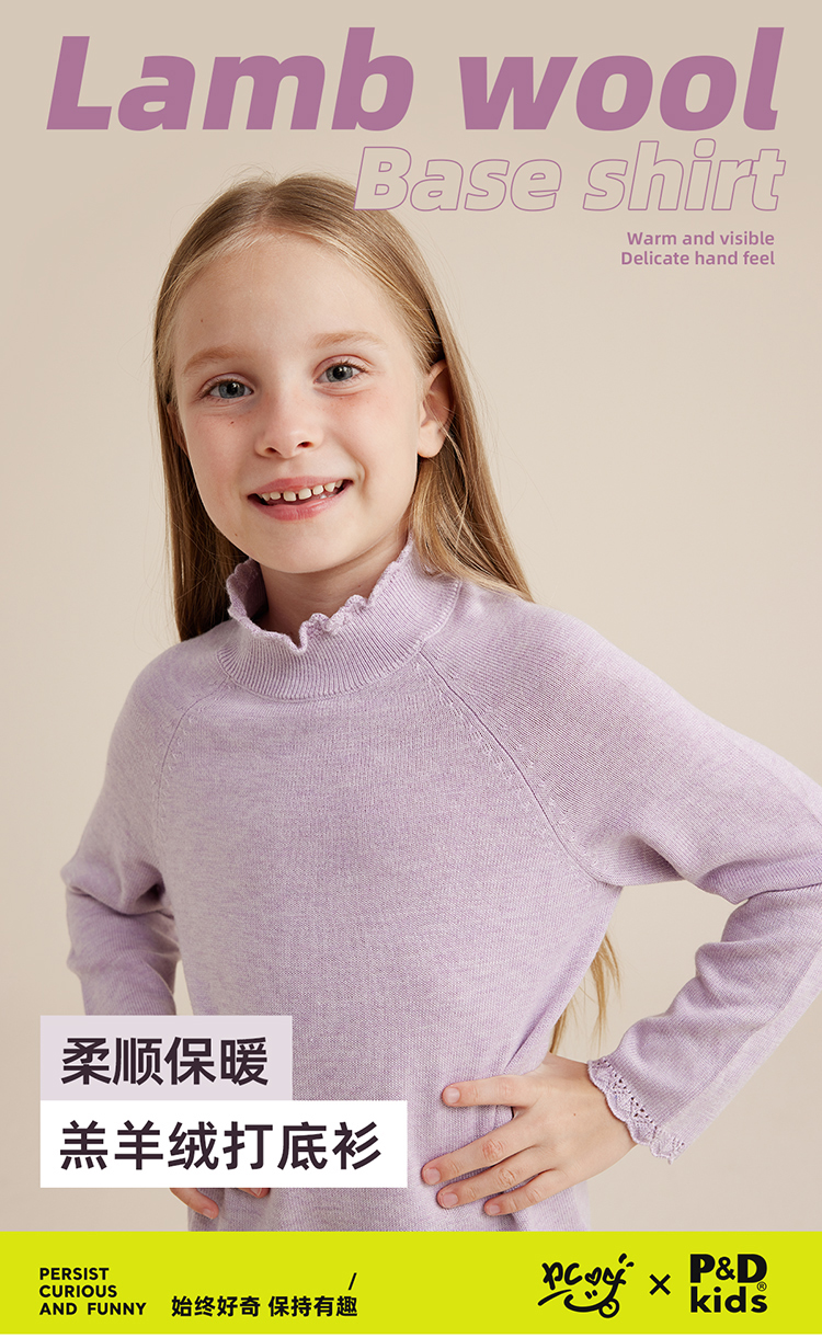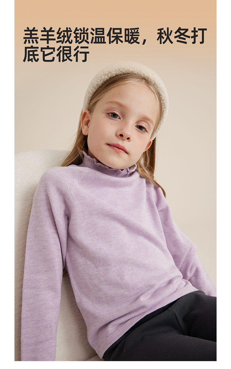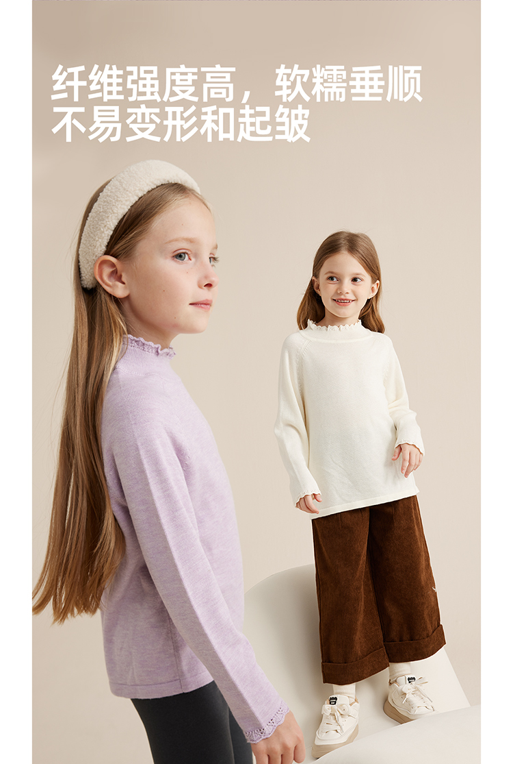 【柔暖舒适羔羊绒】儿童花边高领百搭打底毛衣PQMY2315