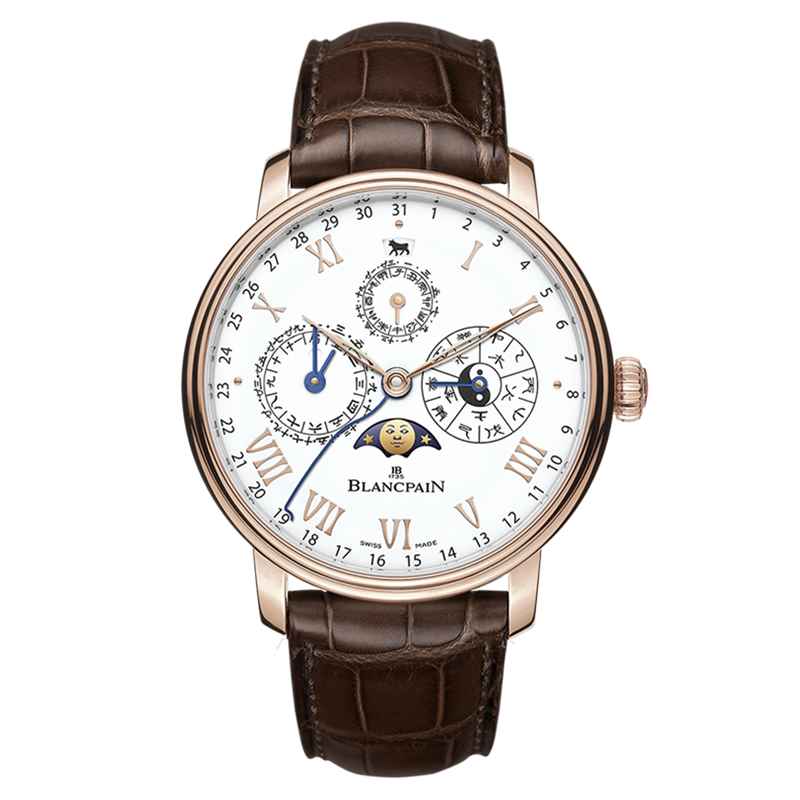 镜面 材质 | 蓝宝石水晶玻璃 | 表盘 | 18K玫瑰金表壳 乳白色表盘 具备中国传统历法显示功能 月相显示 透底 |