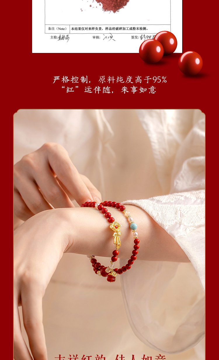 【故宫饰品】如意系列手串粉黄水晶红玛瑙朱砂手链生日礼物