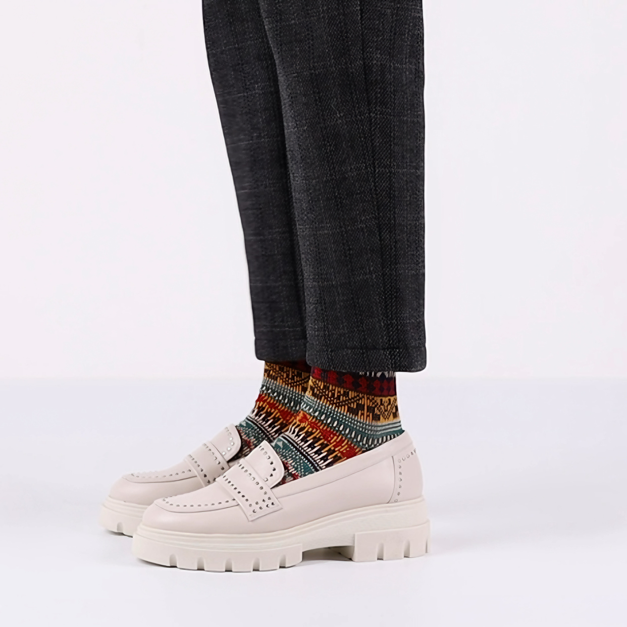 搭配建议:秋冬天搭配筒袜穿着,时尚又舒适。春夏天亦可赤脚穿着,舒适又透气。