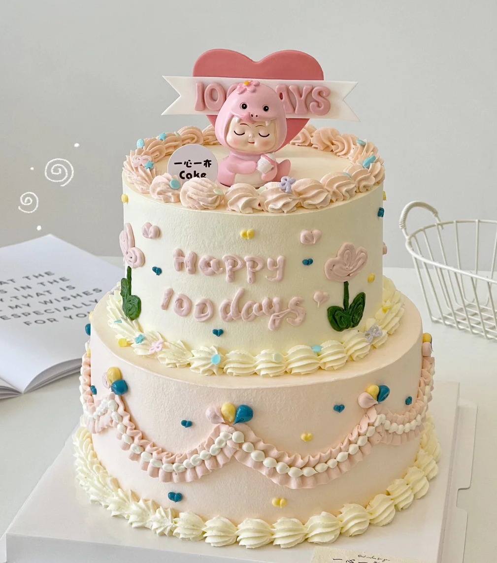 【臻品系列】---【粉色蛇宝宝 花边手绘款】女孩、周岁生日蛋糕