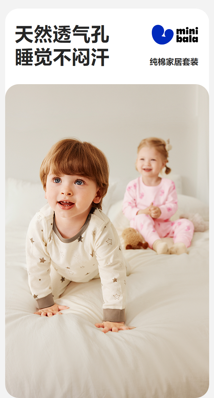 【植物芯】迷你巴拉儿童内衣套装男女童宝宝秋衣秋裤高腰护肚