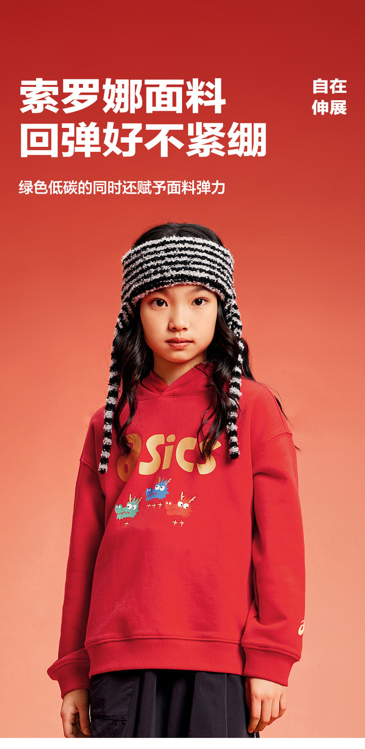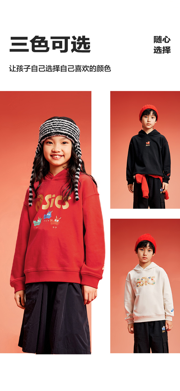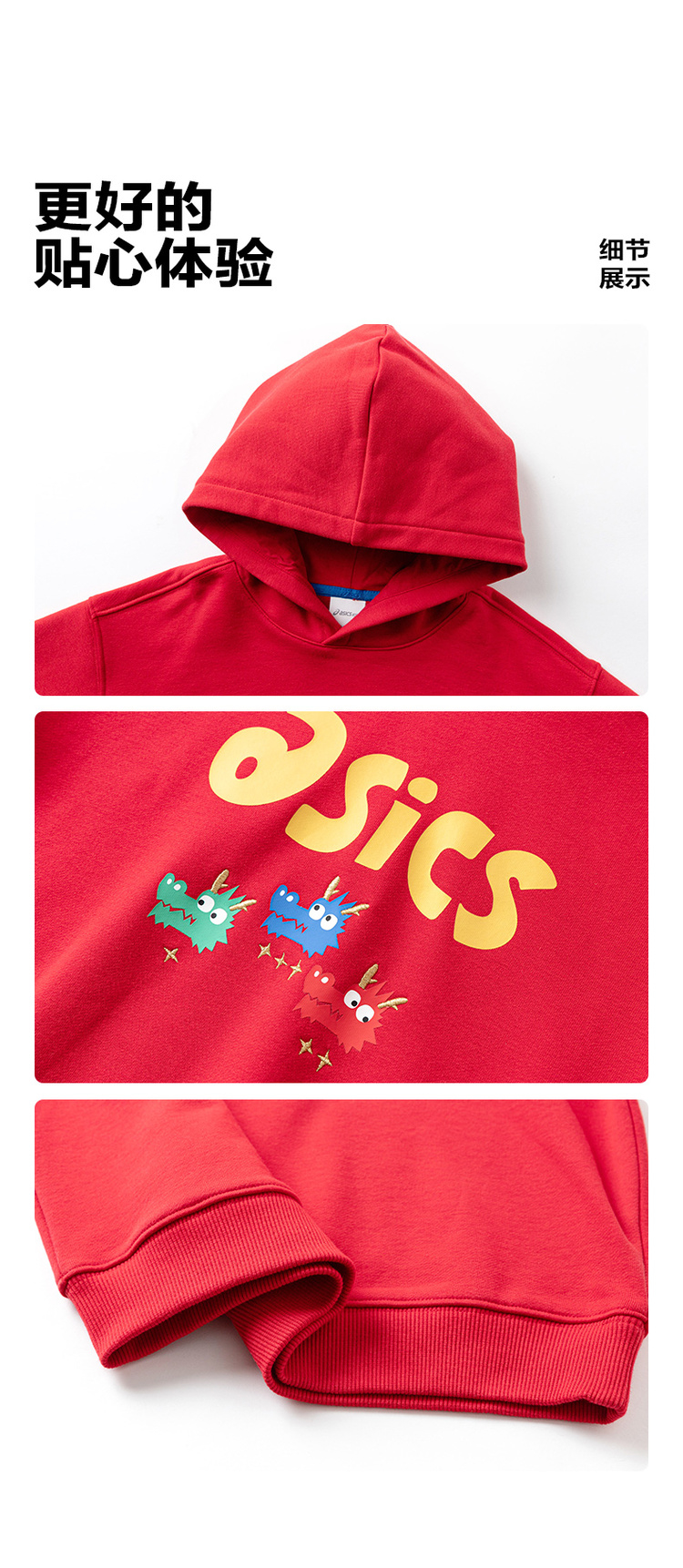 asics/亚瑟士【新年限定】童装2024春季男女儿童柔软舒适连帽卫衣