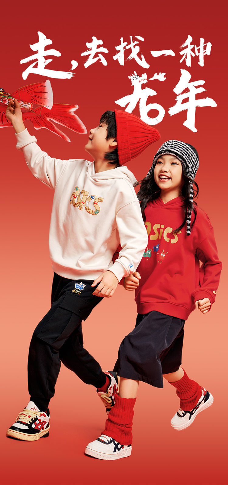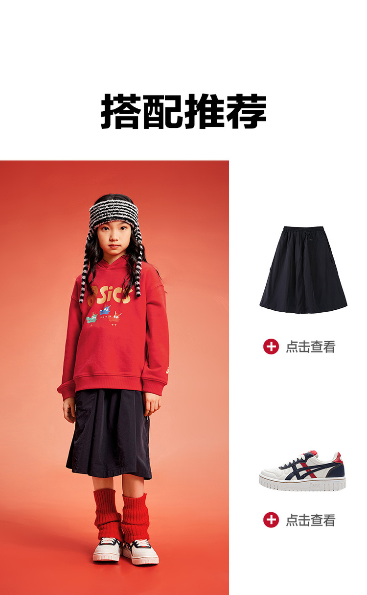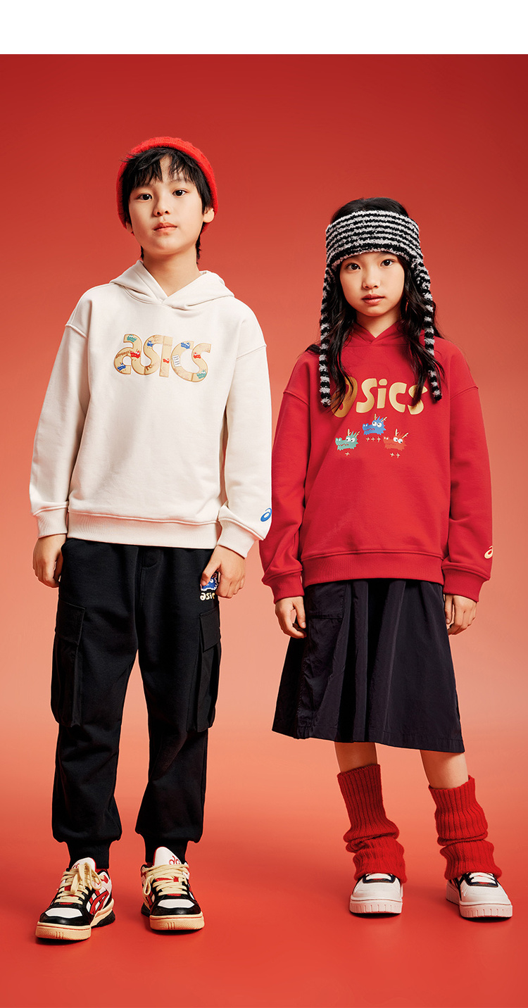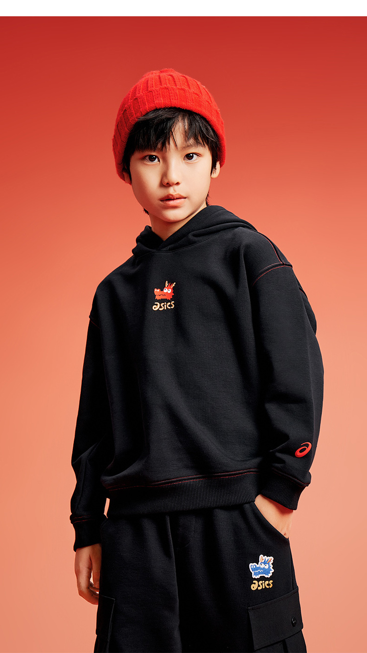 asics/亚瑟士【新年限定】童装2024春季男女儿童柔软舒适连帽卫衣