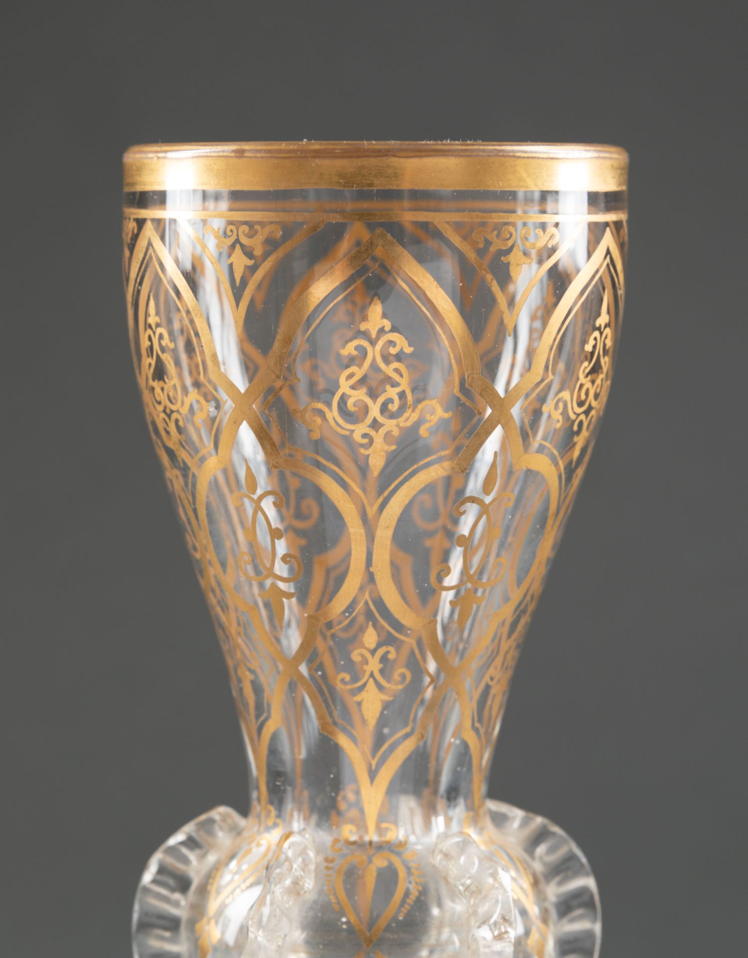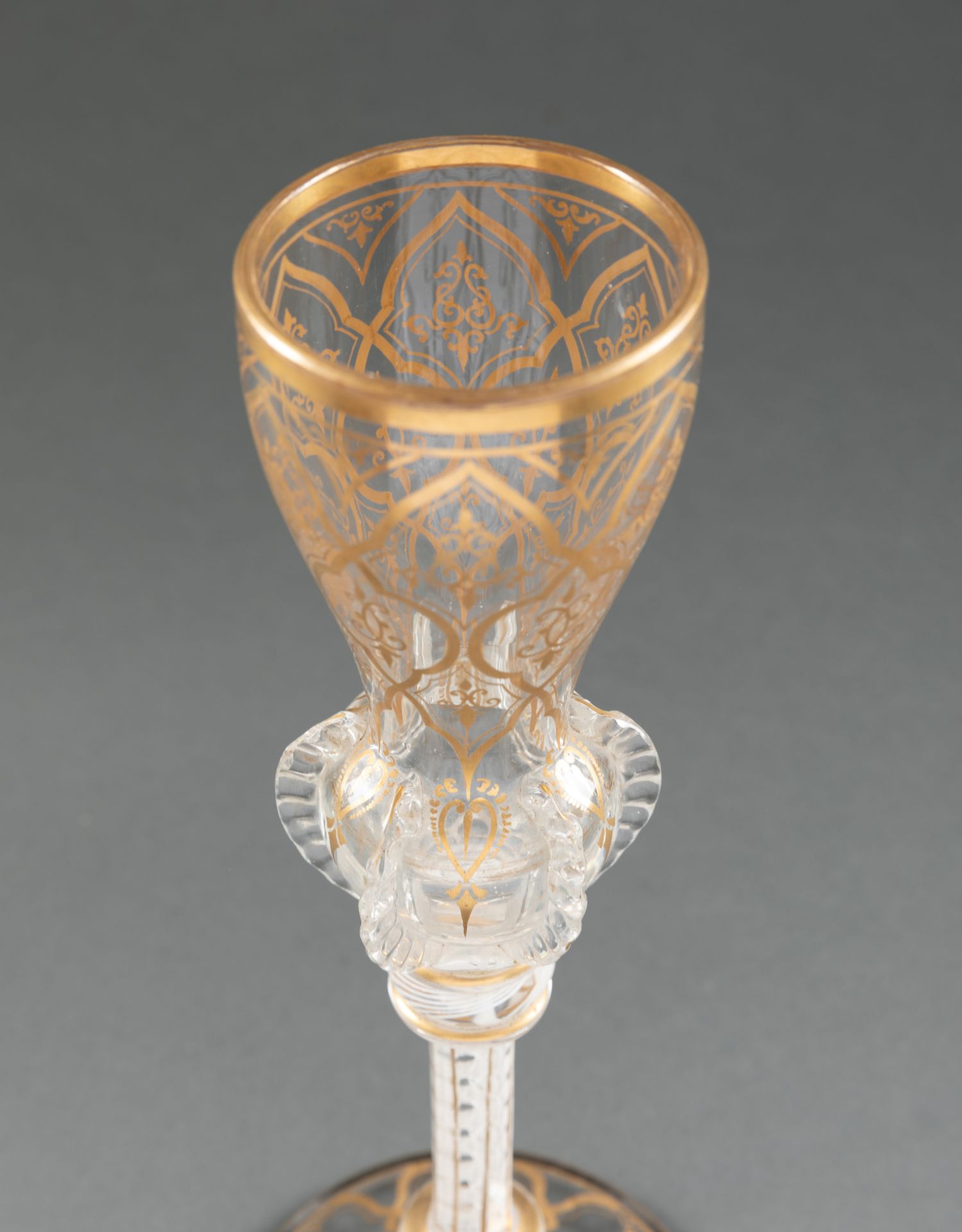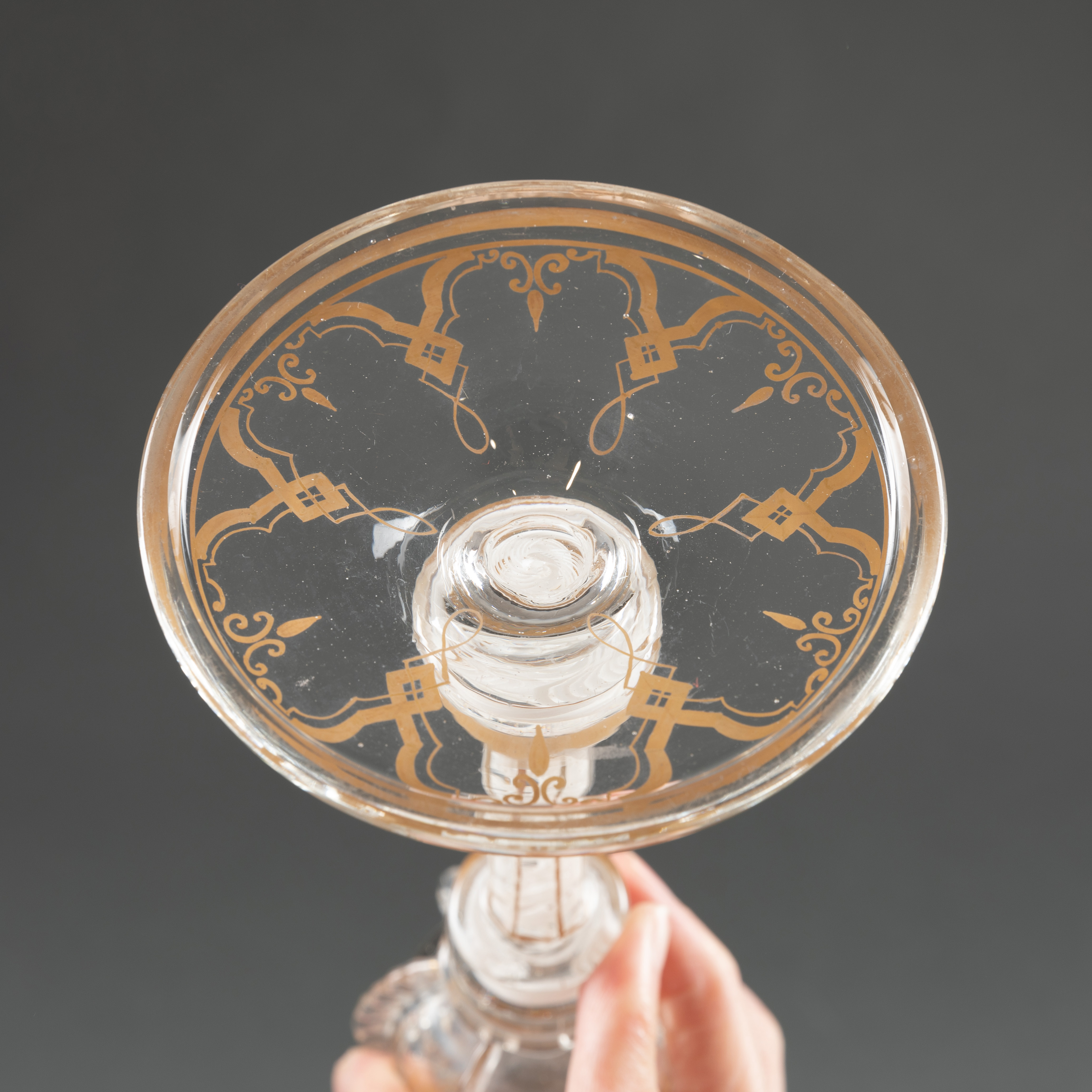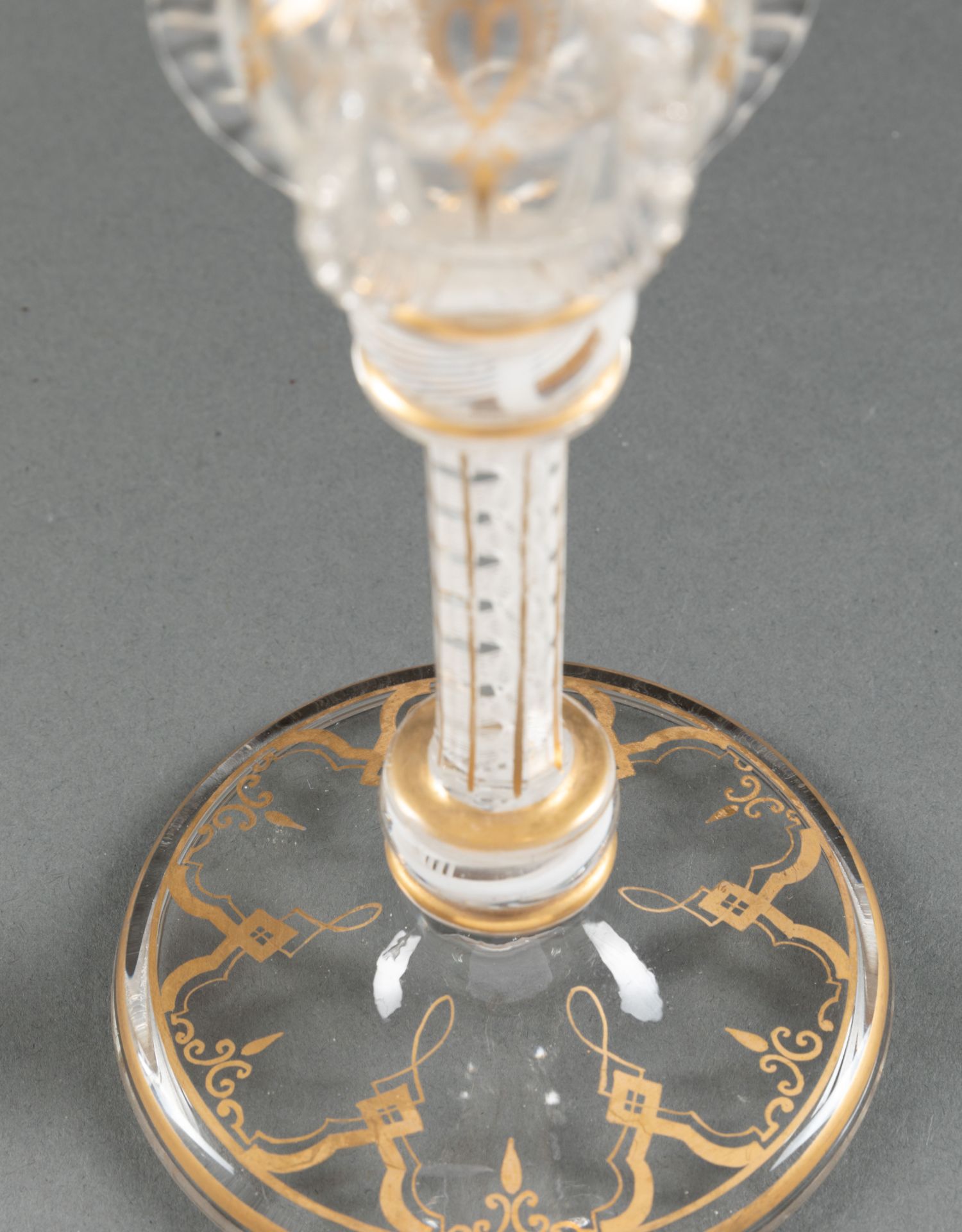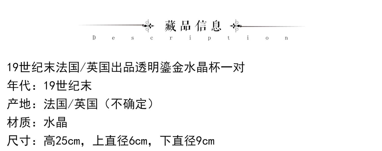独角鹿西洋古董摆件19世纪末法国/英国出品透明鎏金水晶酒杯一对