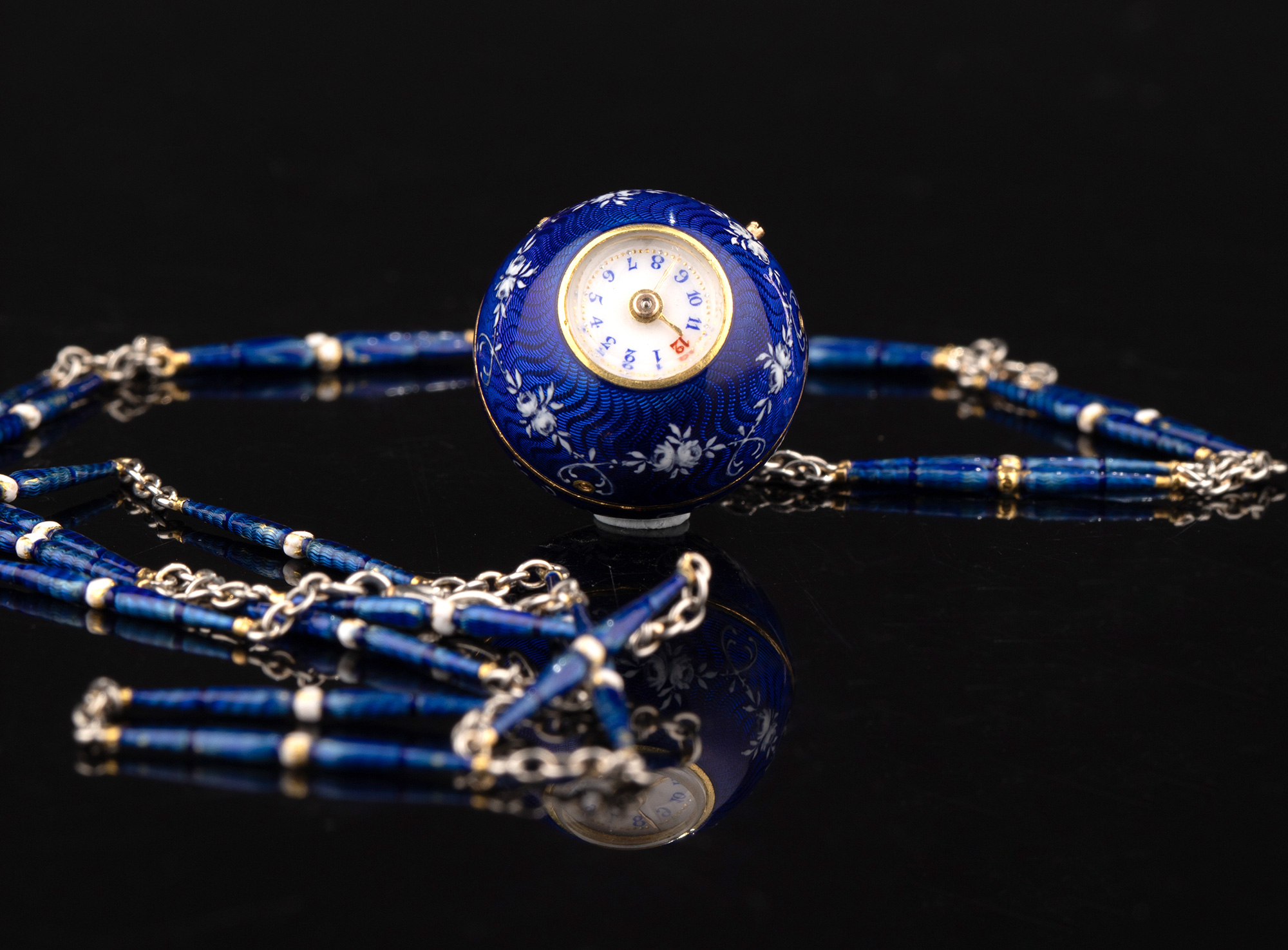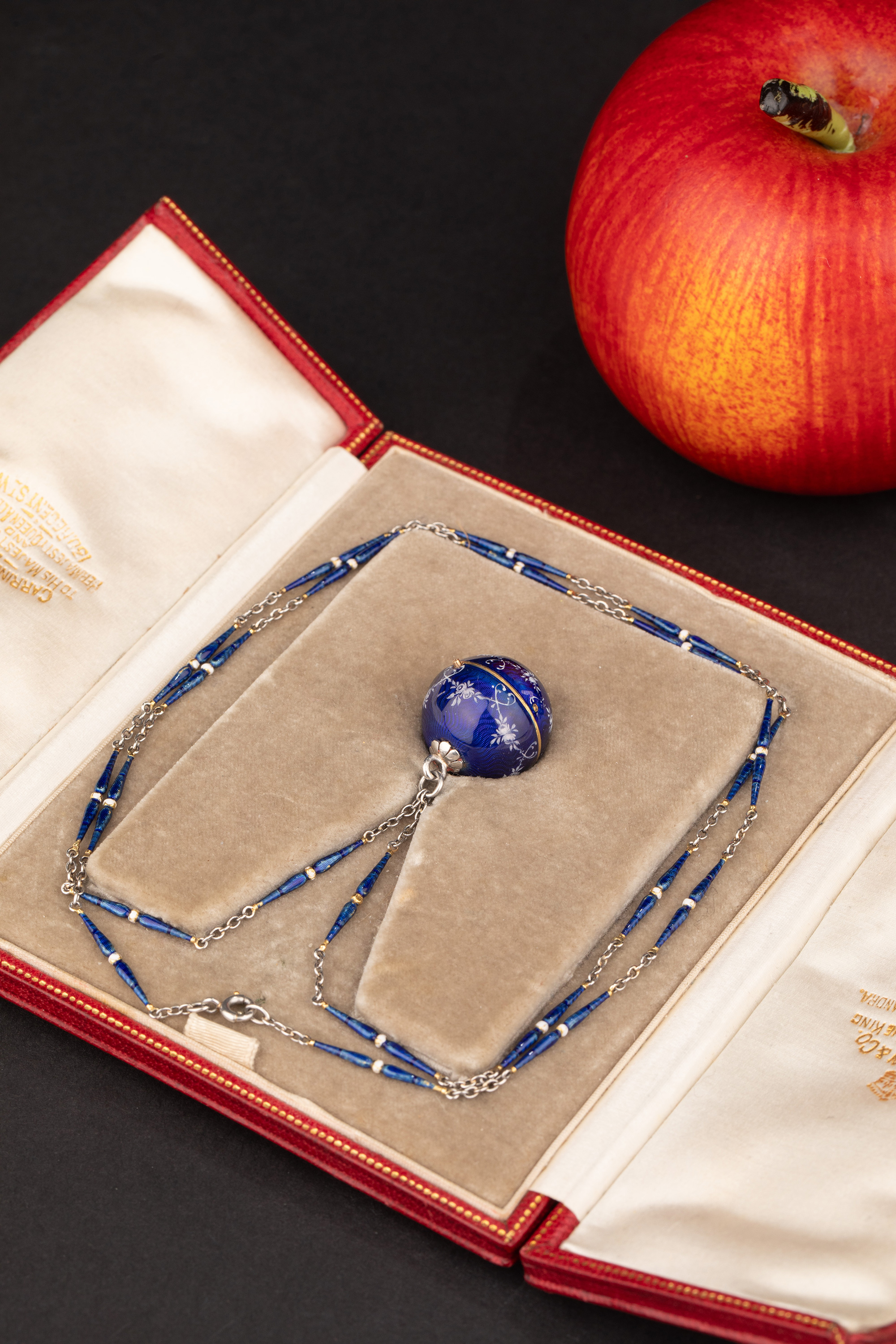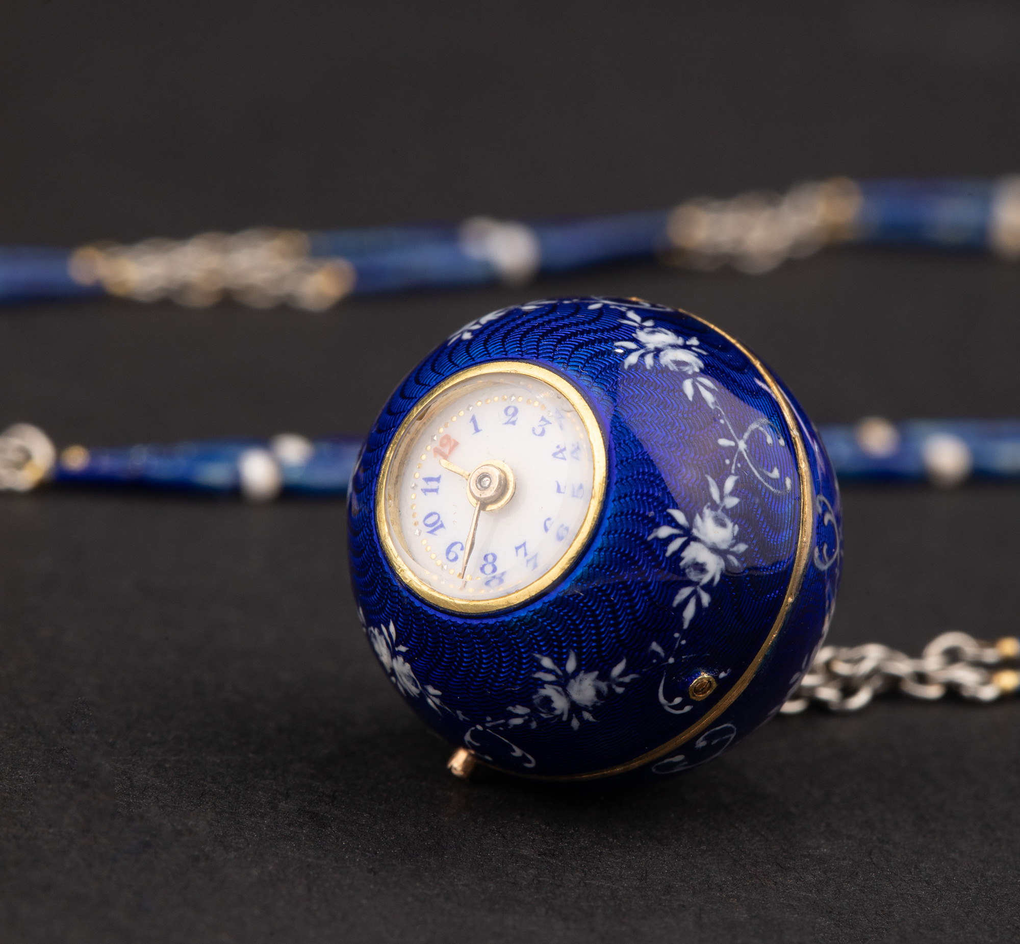 1910-1920年代瑞士出品球形怀表及原配表链(红色原装盒)