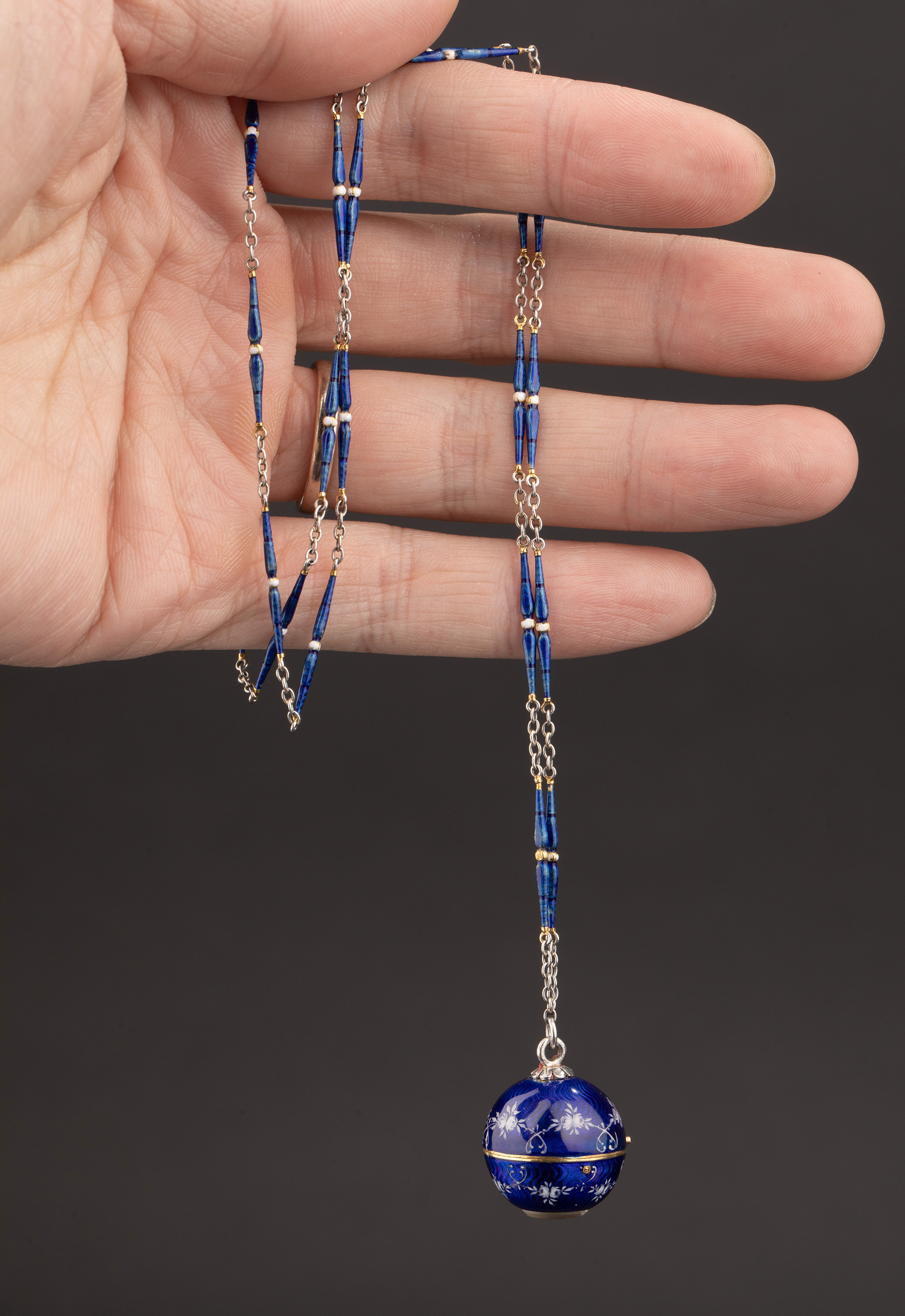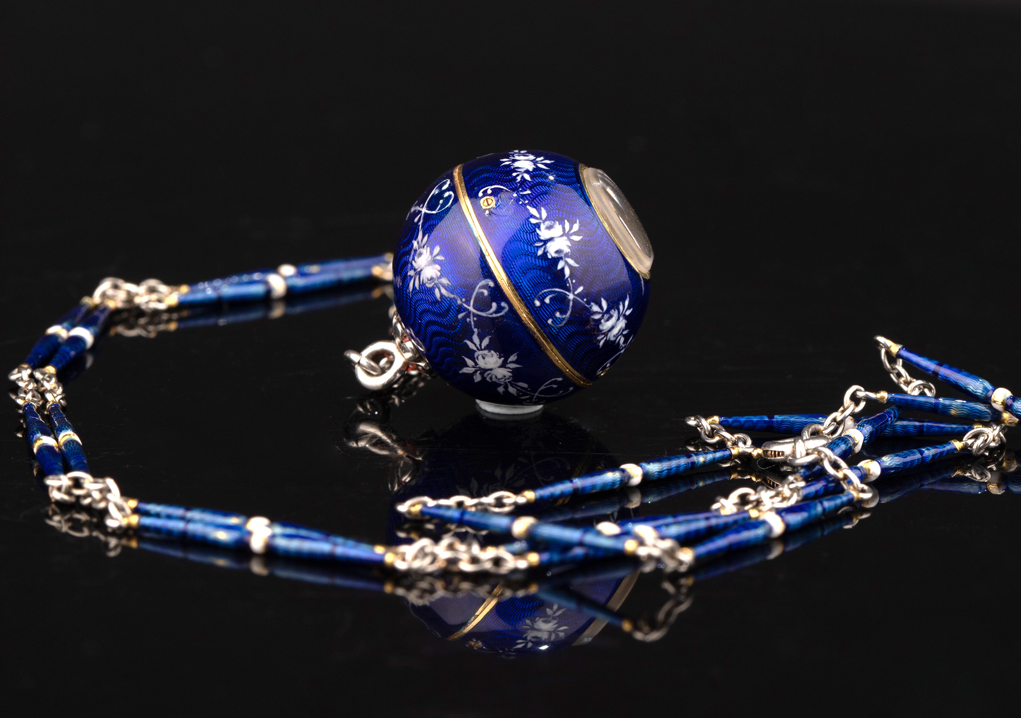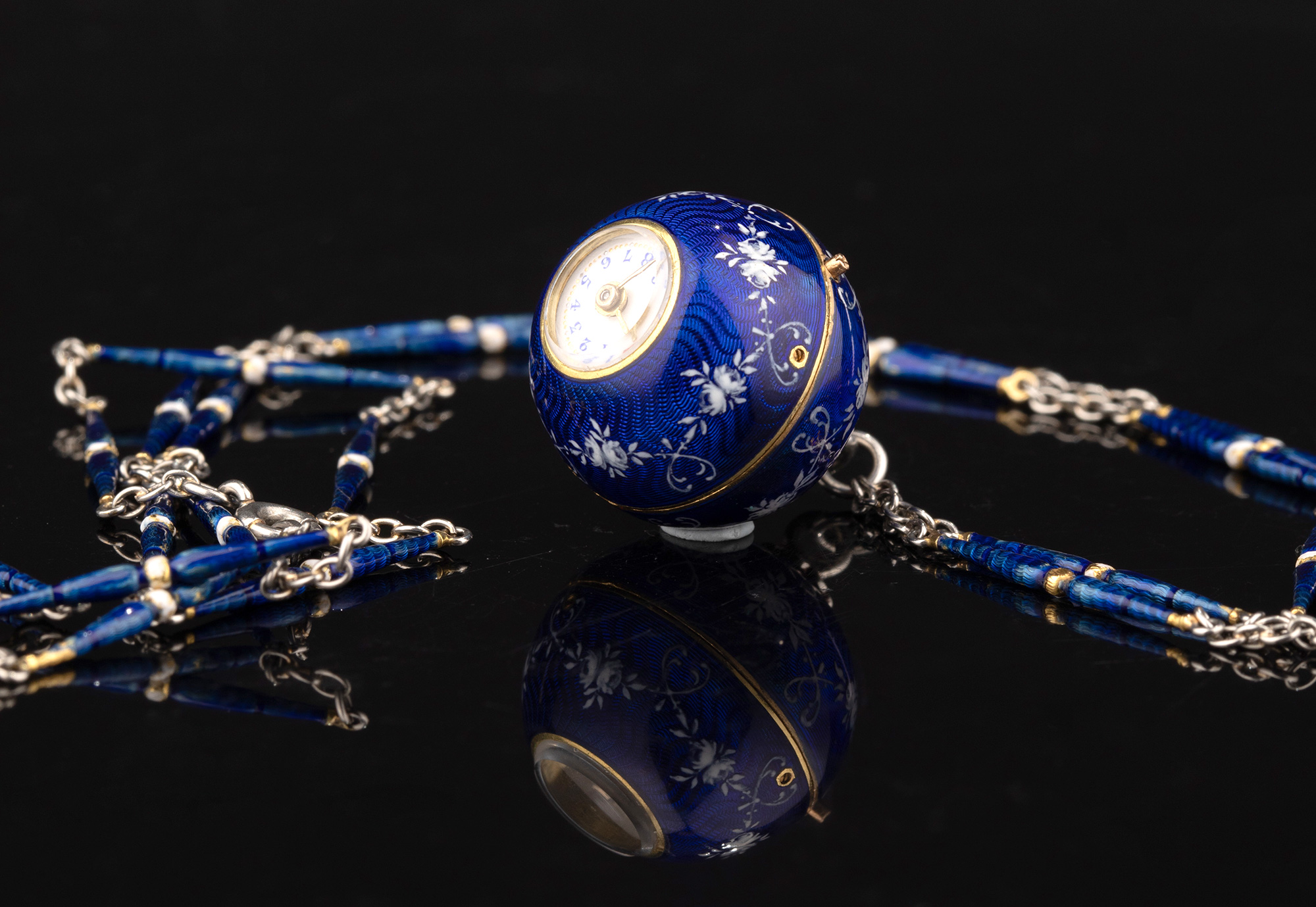 1910-1920年代瑞士出品球形怀表及原配表链(红色原装盒)