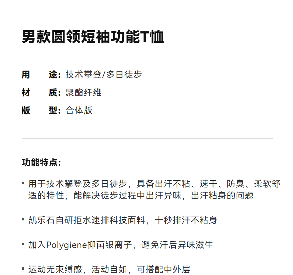 KAILAS凯乐石 男款圆领短袖功能T恤 KG2517114【Z】