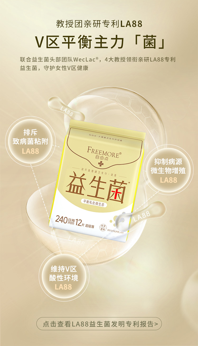 自由点益生菌无感透气超薄平衡私处卫生巾组合装74片