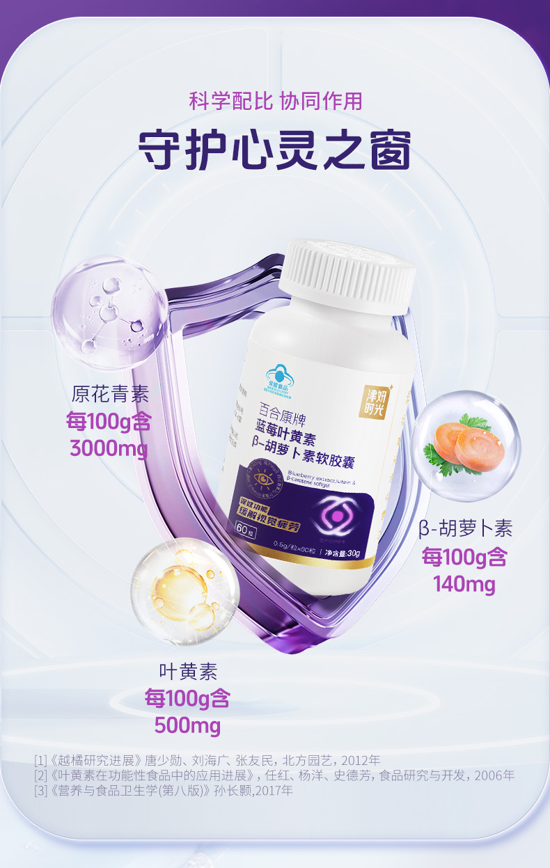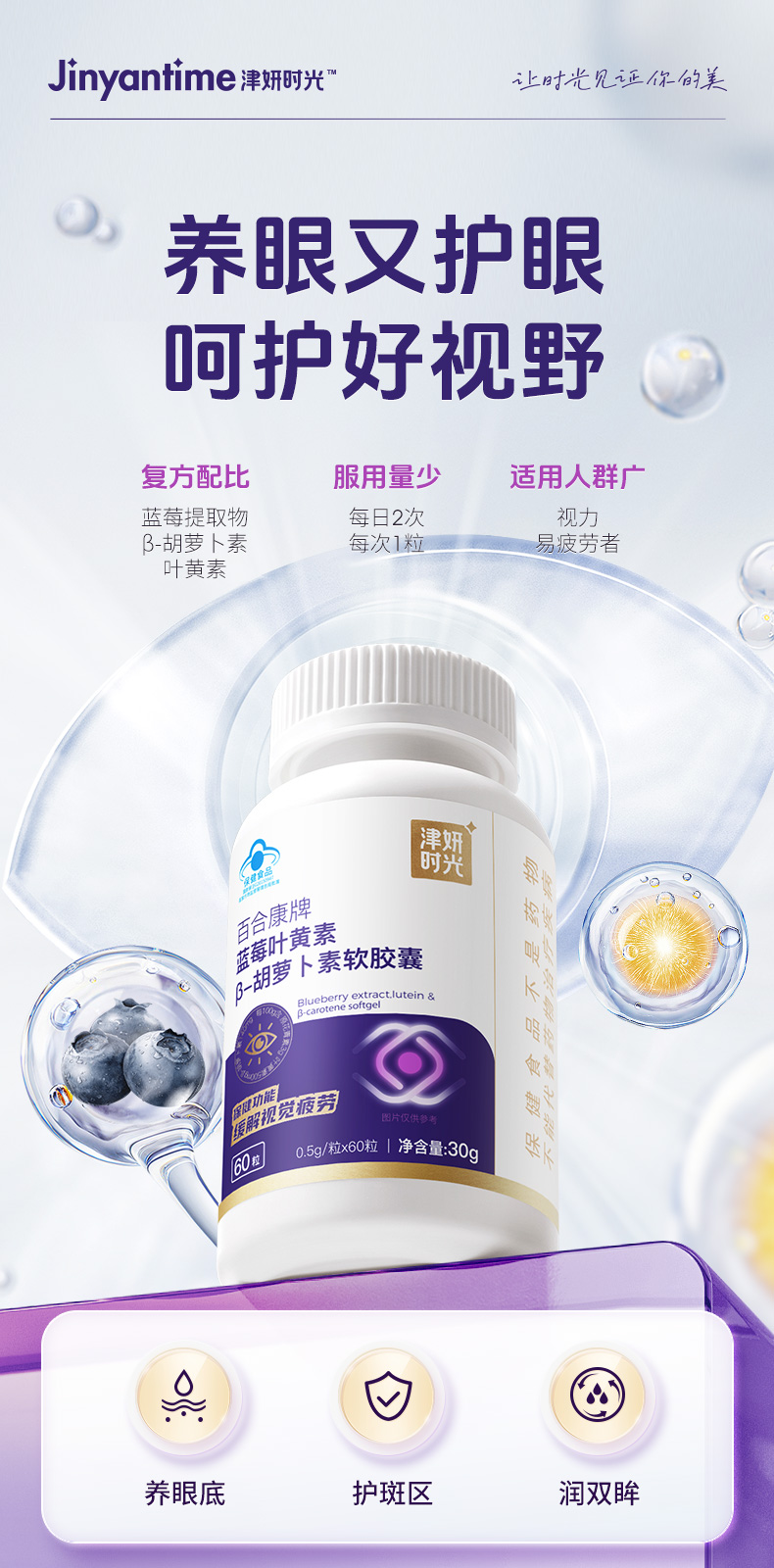 【津妍时光蓝莓叶黄素胶囊】三大营养成分,直达眼底 ,补充营养素,疏通眼部微循环 上班族/学生党必备 缓解干涩疲劳
